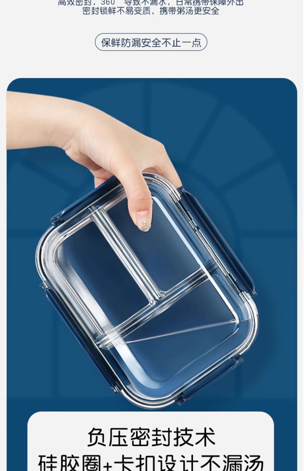 large length 3 compartment 960ml [microwaveable heating]]