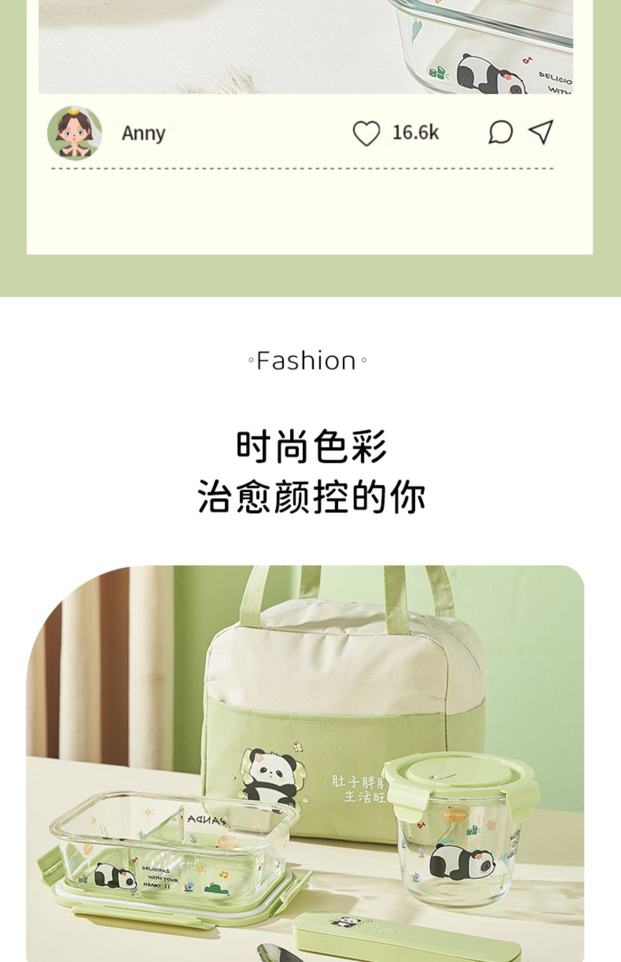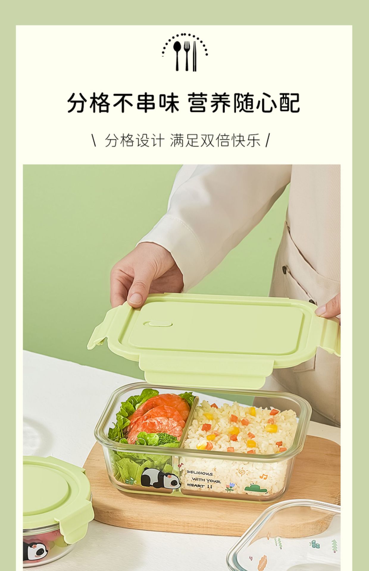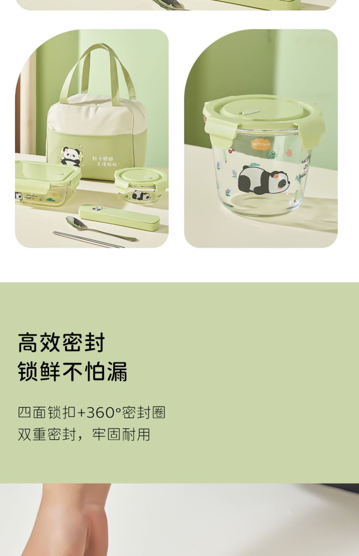 large length without separation 1090ml + small round 480ml + stainless steel tableware + panda bag