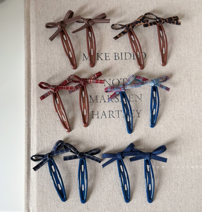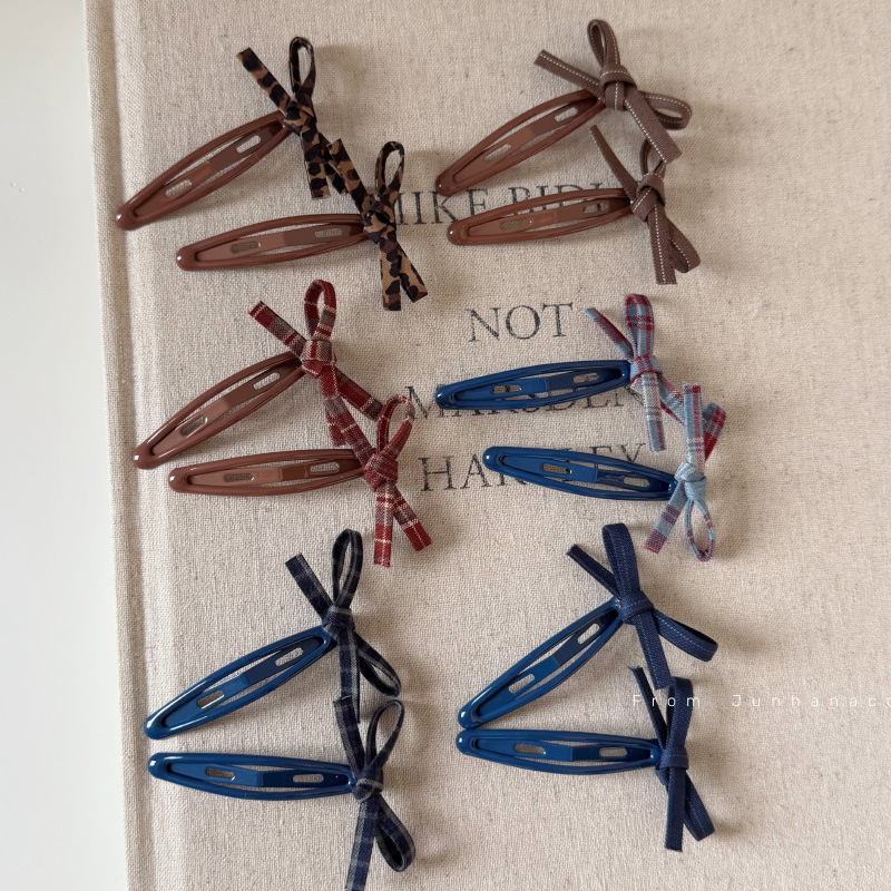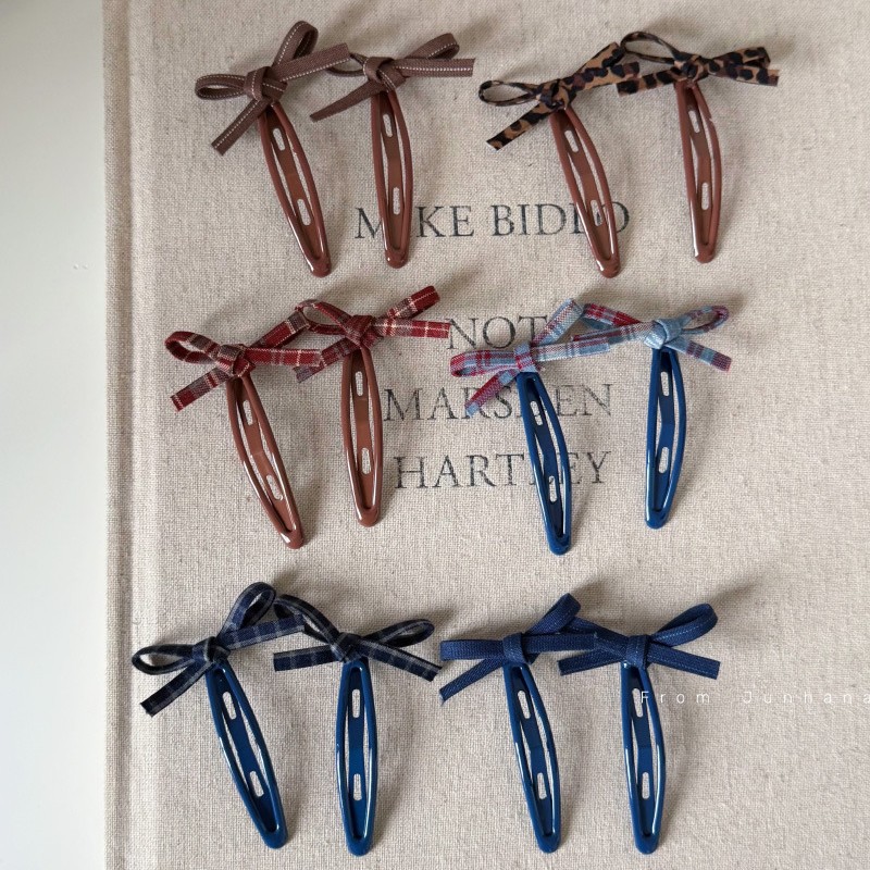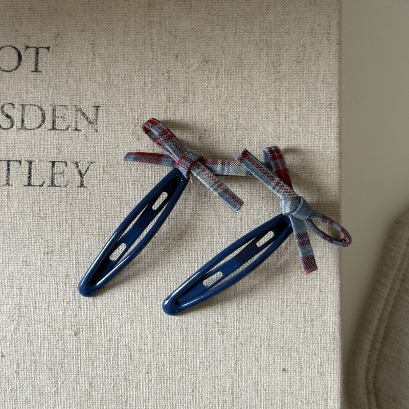 6# blue barrettes red pattern bowknot pair