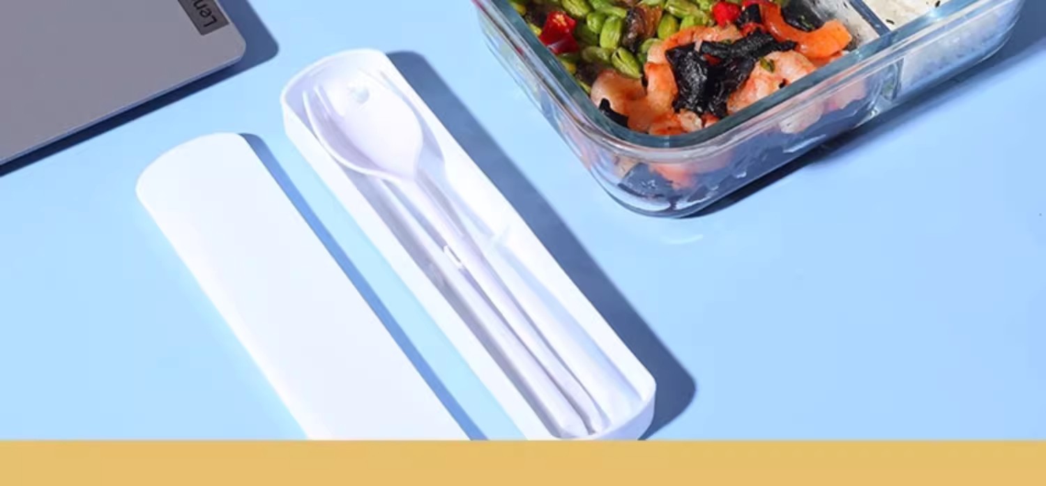 [matcha green] medium length 2 grids + lunch bag + tableware set