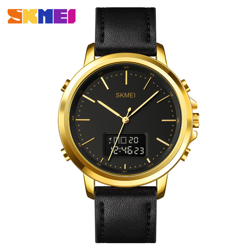 silver case black machine-steel belt