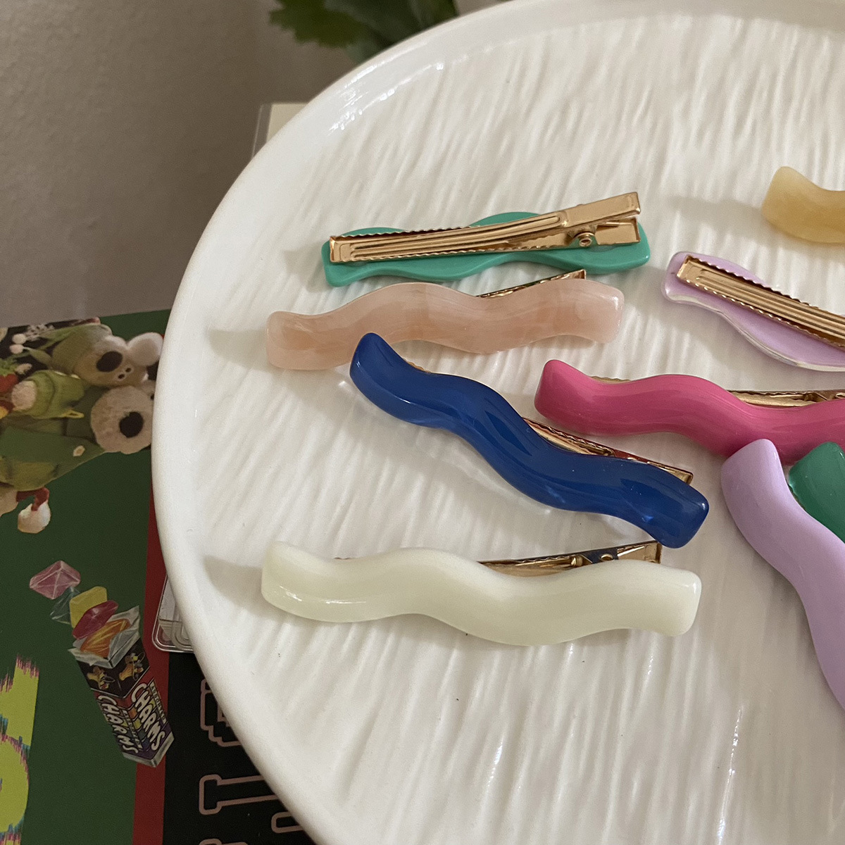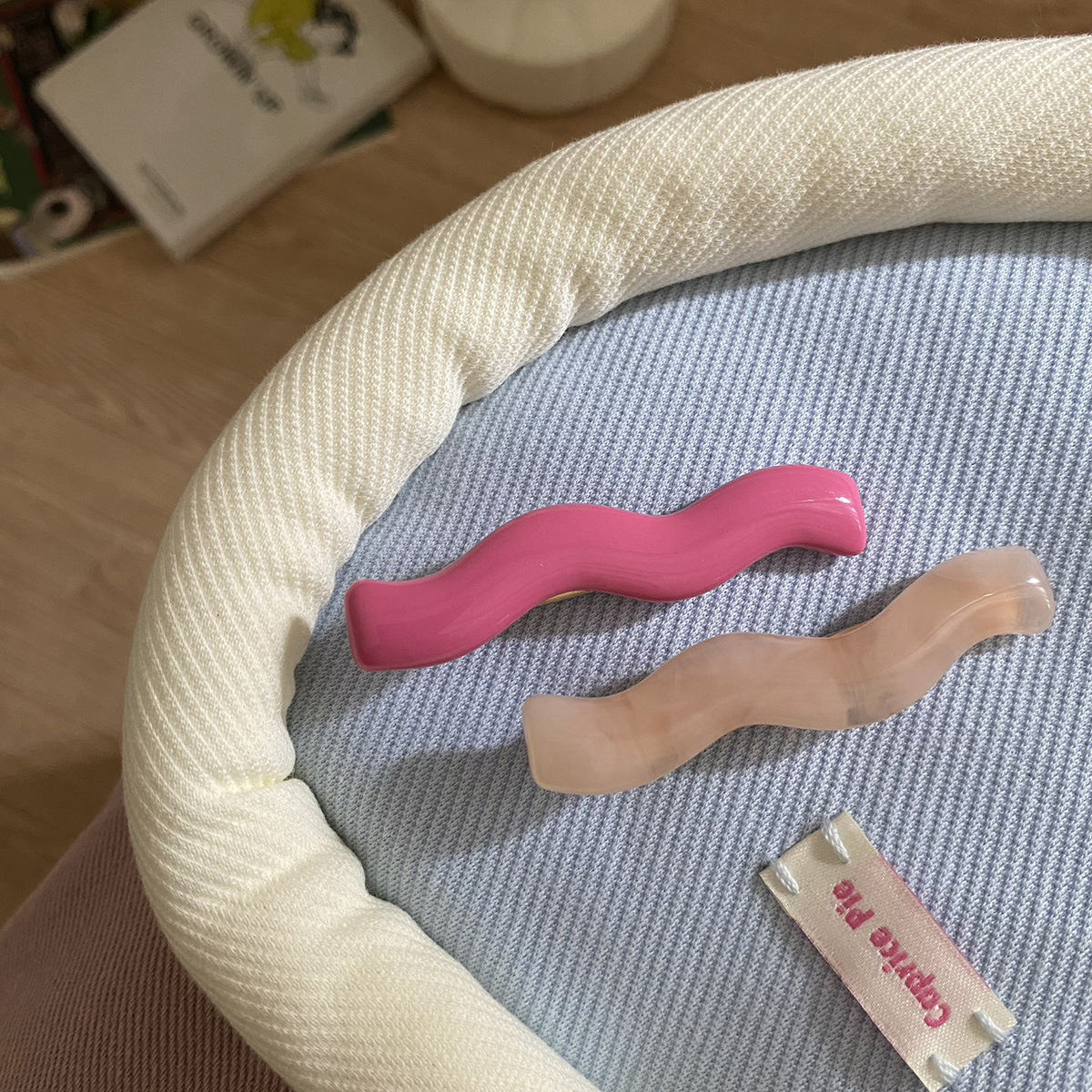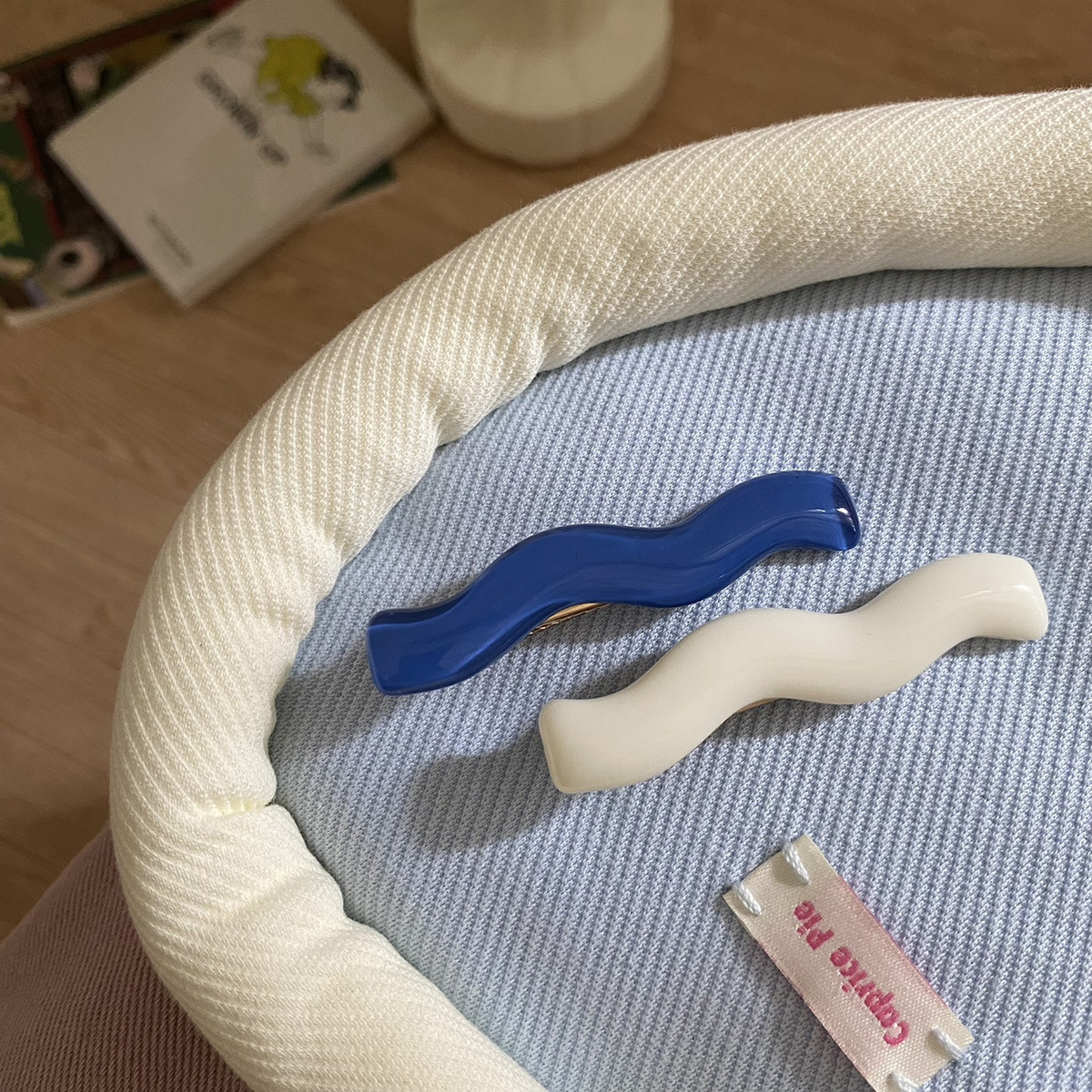 milky white + gray and blue pattern