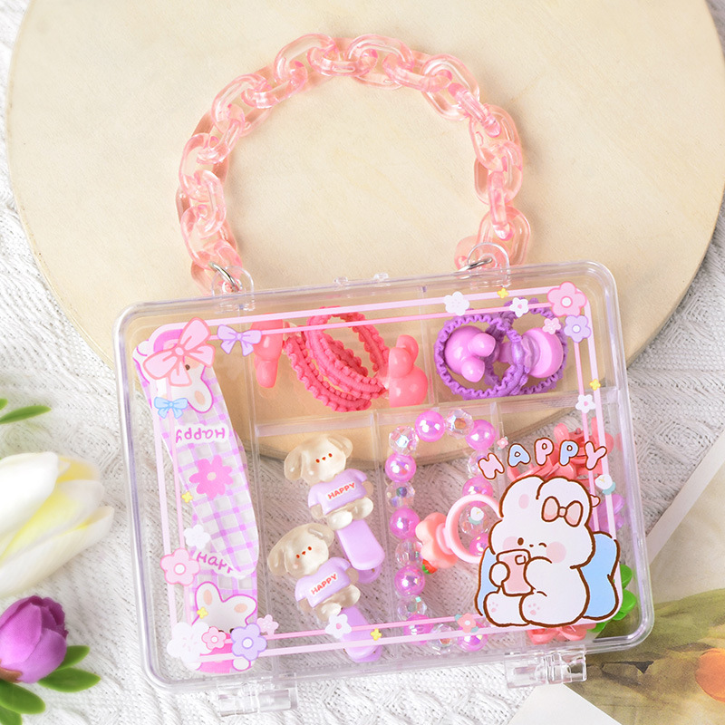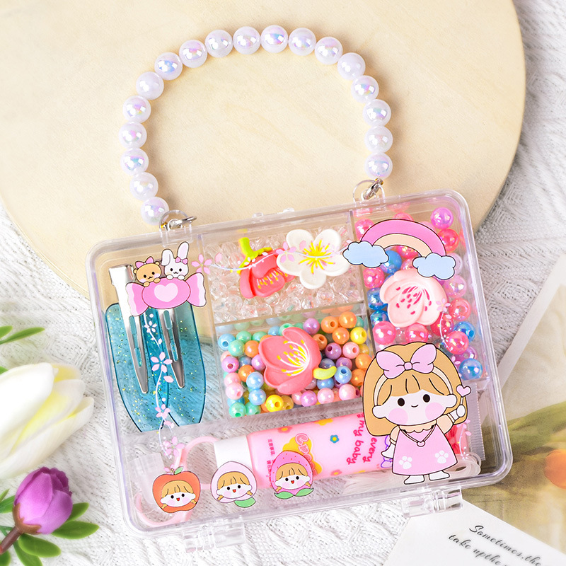portable square box barrettes beads
