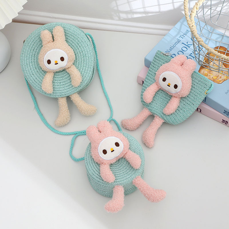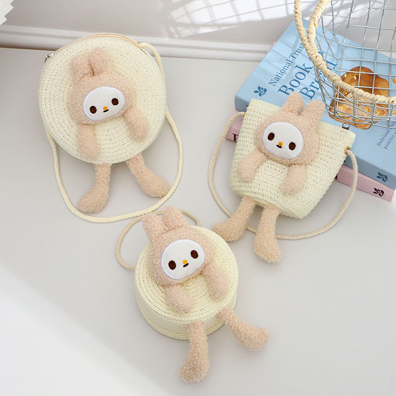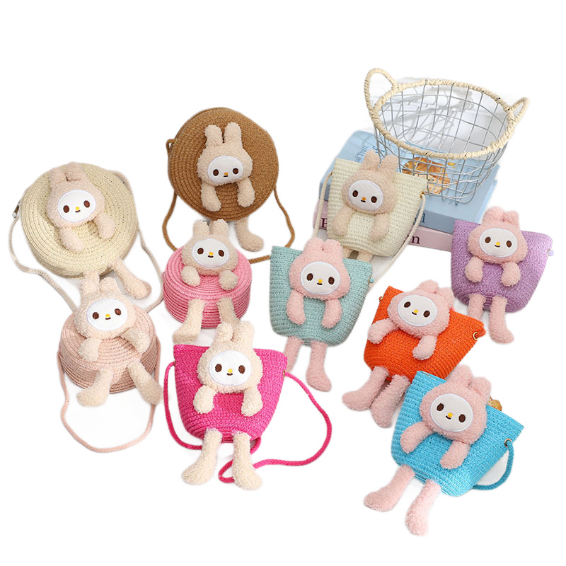 cute rabbit straw bag doll hand-woven leisure bag children beach bag change hand-woven bag