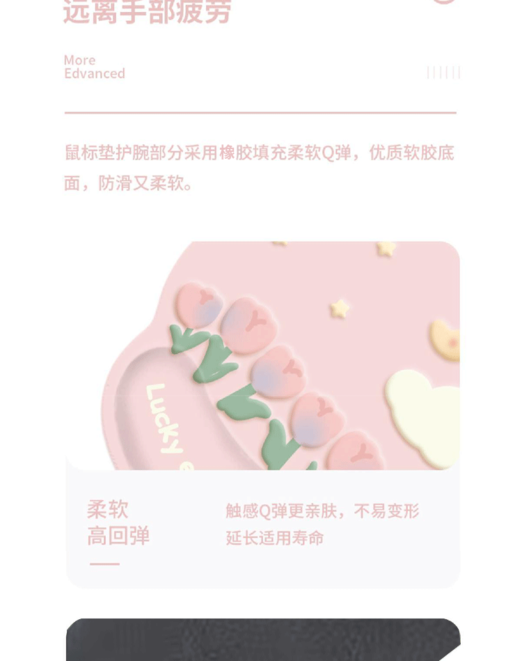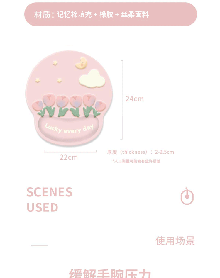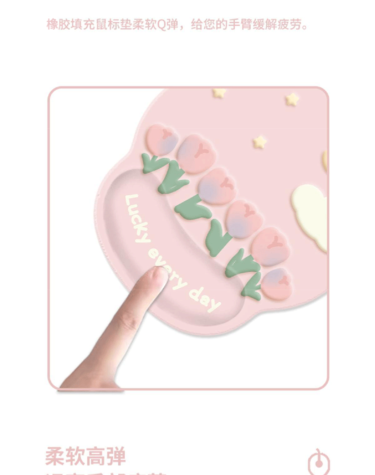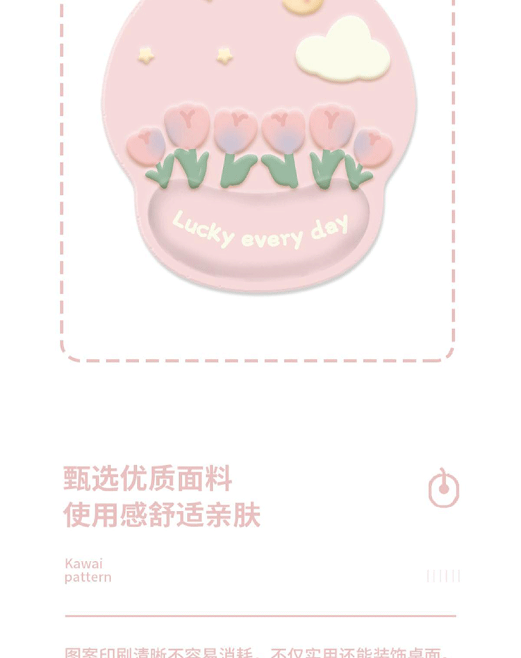 pink tulip mouse pad + keyboard support/package 2-piece set