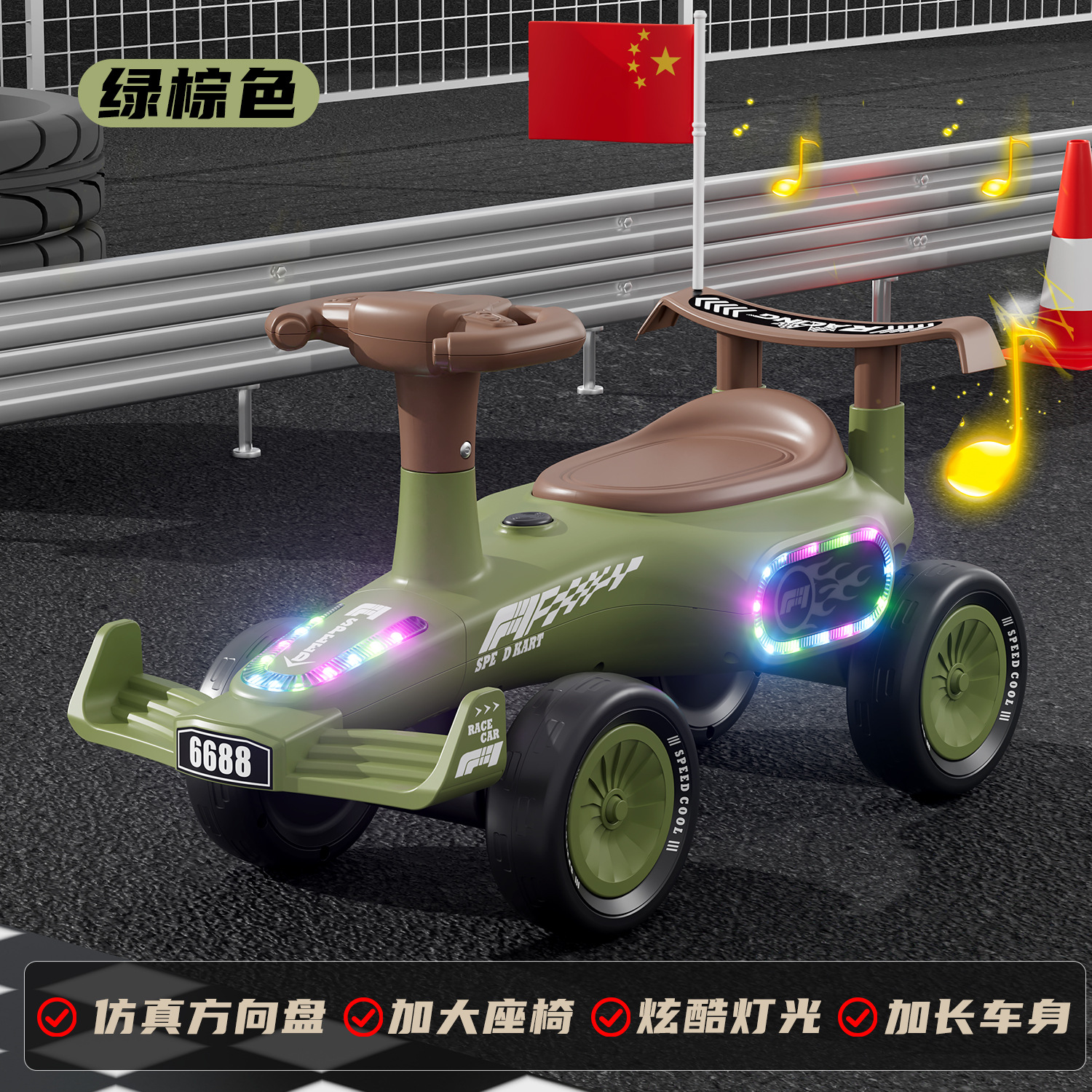 hk-green brown music light light belt national flag