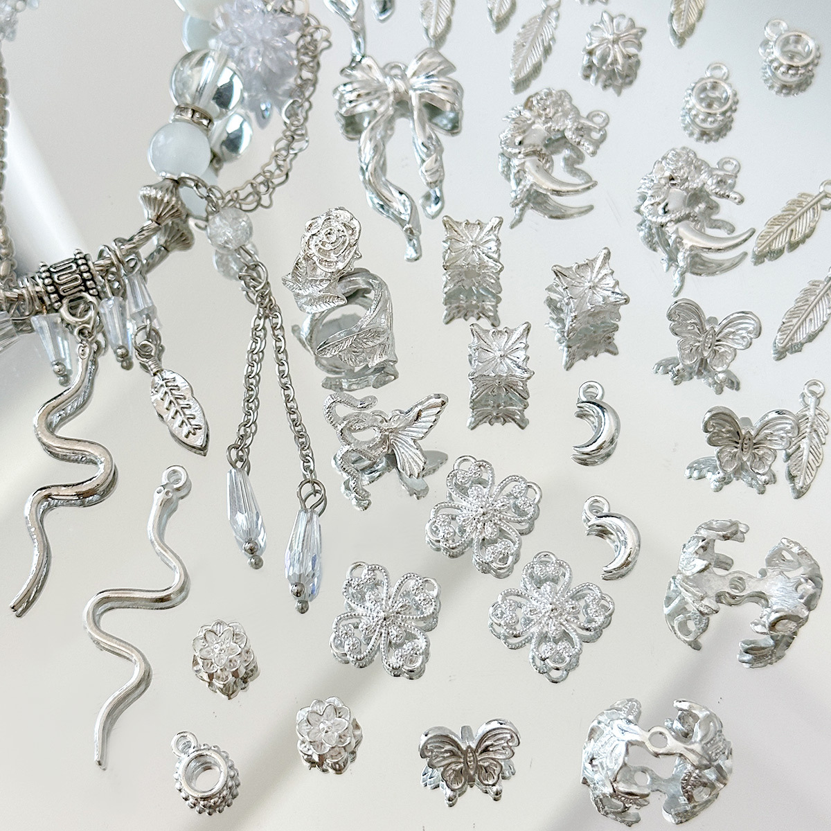 sl5834 [bright silver butterfly snake back hole beads] (1)