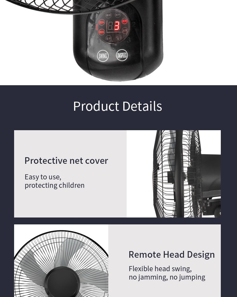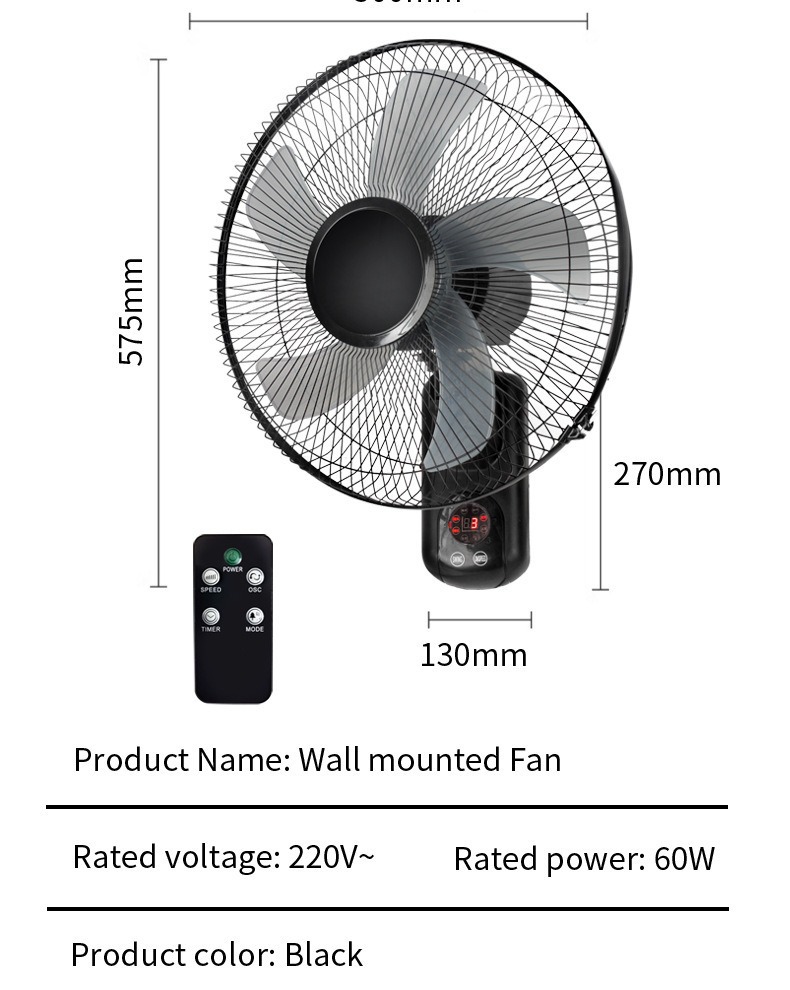 16-inch-remote control type-wall fan-iron mesh cover-europlug
