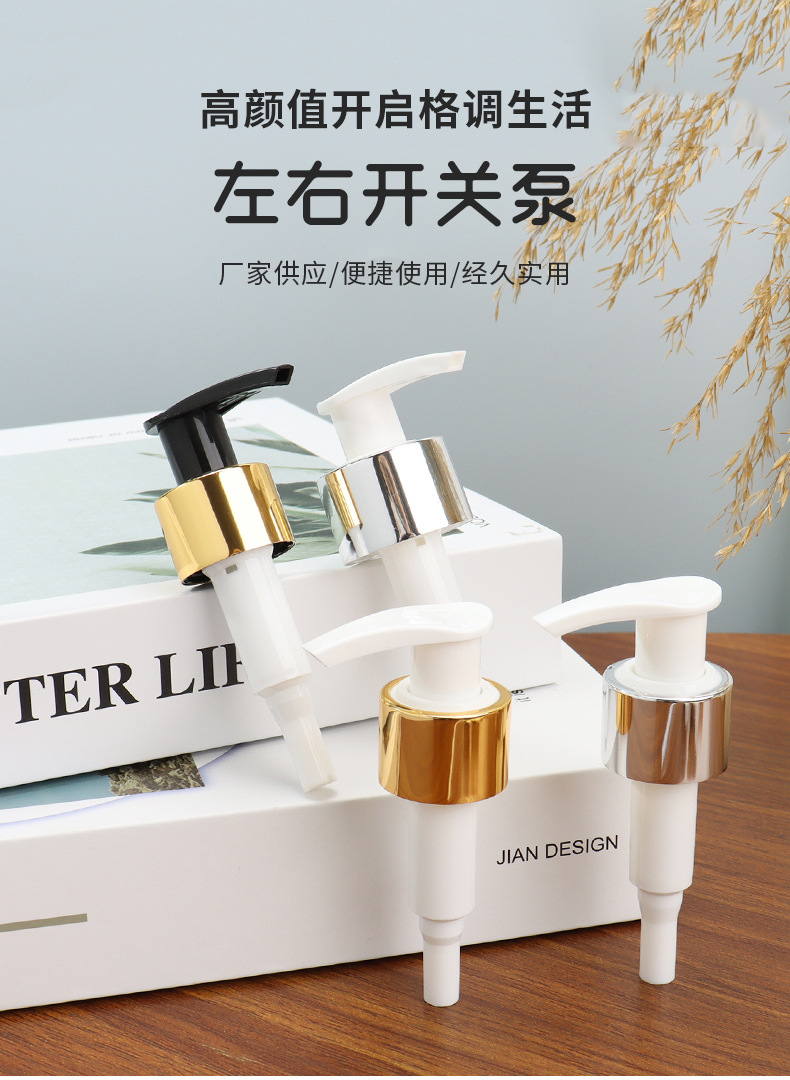 left and right switch pump threaded pump electrochemical aluminum shampoo lotion pump gold silver anodized aluminum pump head switch pump
