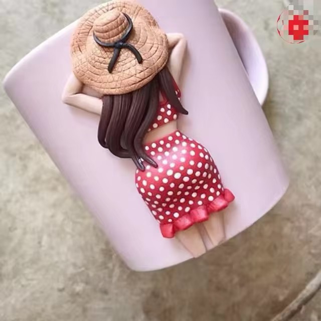 amazon hot mug doll national fashion ancient style girl cute doll mug ceramic water cup