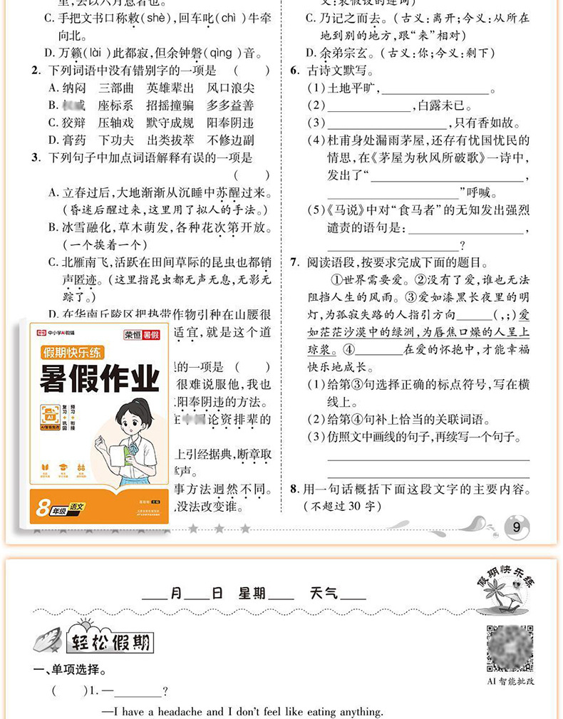 [single book] chinese summer vacation homework grade 8