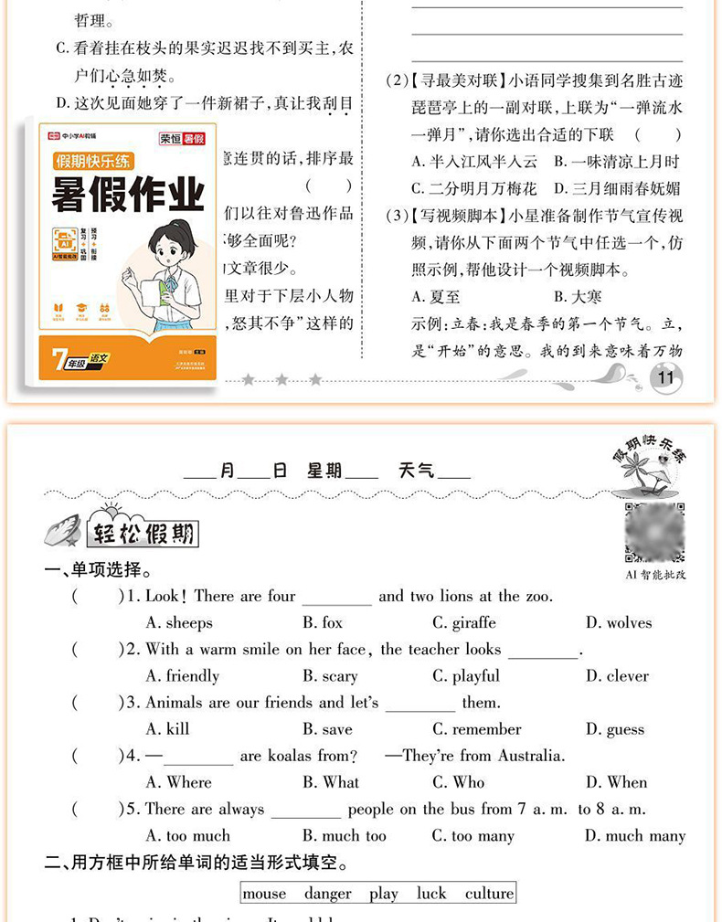 [single book] chinese summer vacation homework grade 7