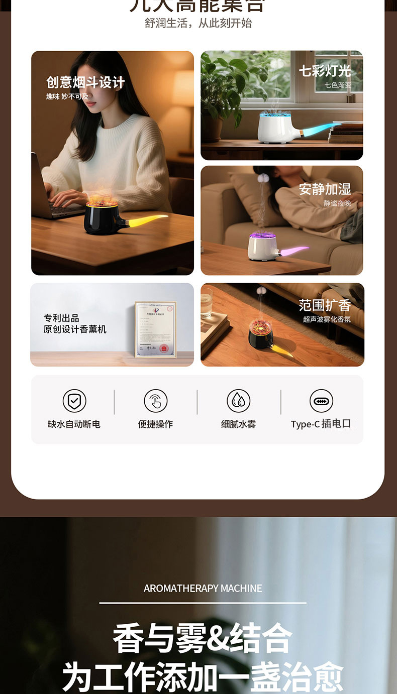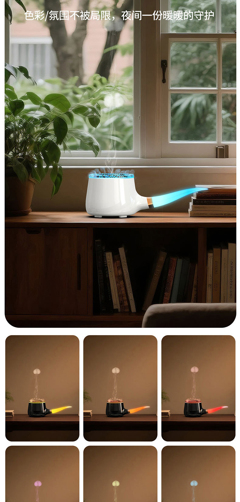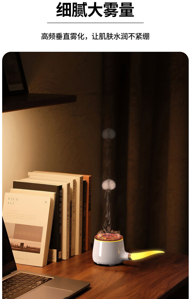 foreign trade new creative pipe aroma diffuser jellyfish spray domestic humidifier aerosol dispenser colorful flame ultrasonic aroma diffuser