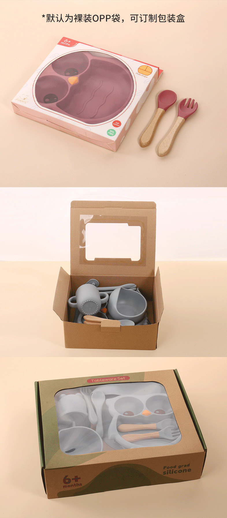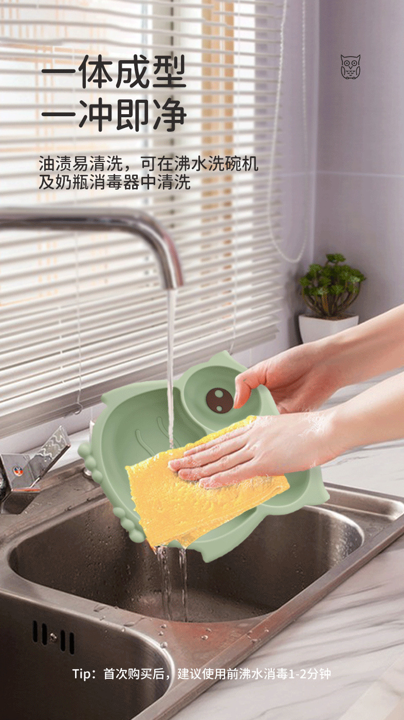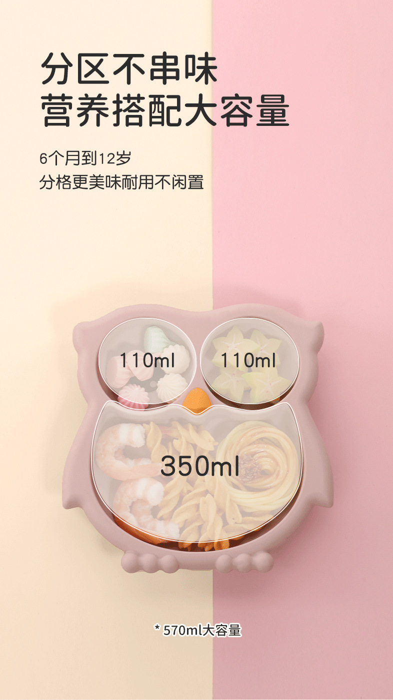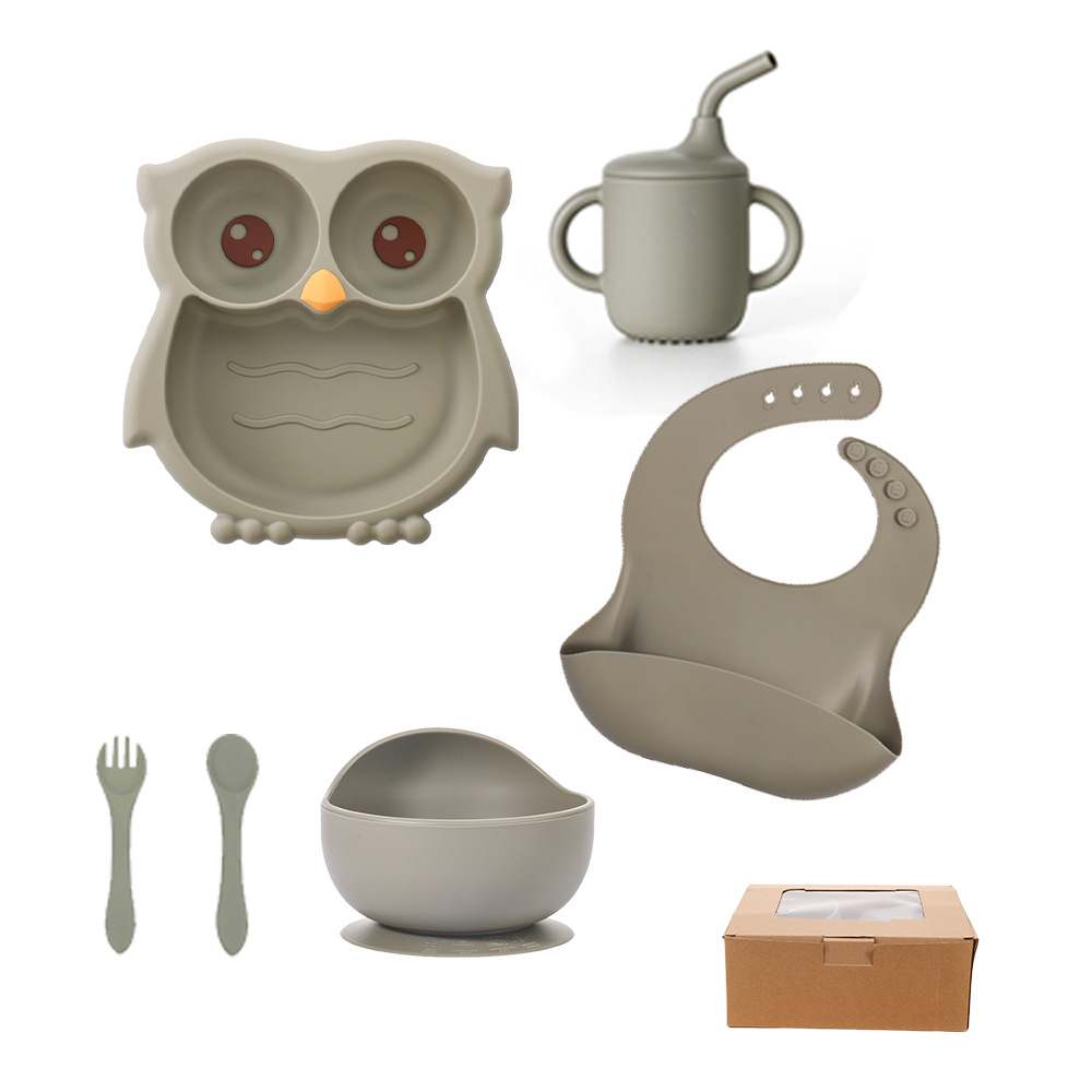 baby silicone owl plate new baby one-piece compartment food supplement plate children's silicone tableware set