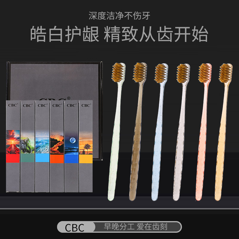 factory wholesale 6 pcs crystal toothbrush handle gift box toothbrush set box ultra-fine ultra-soft wide head soft bristle family toothbrush