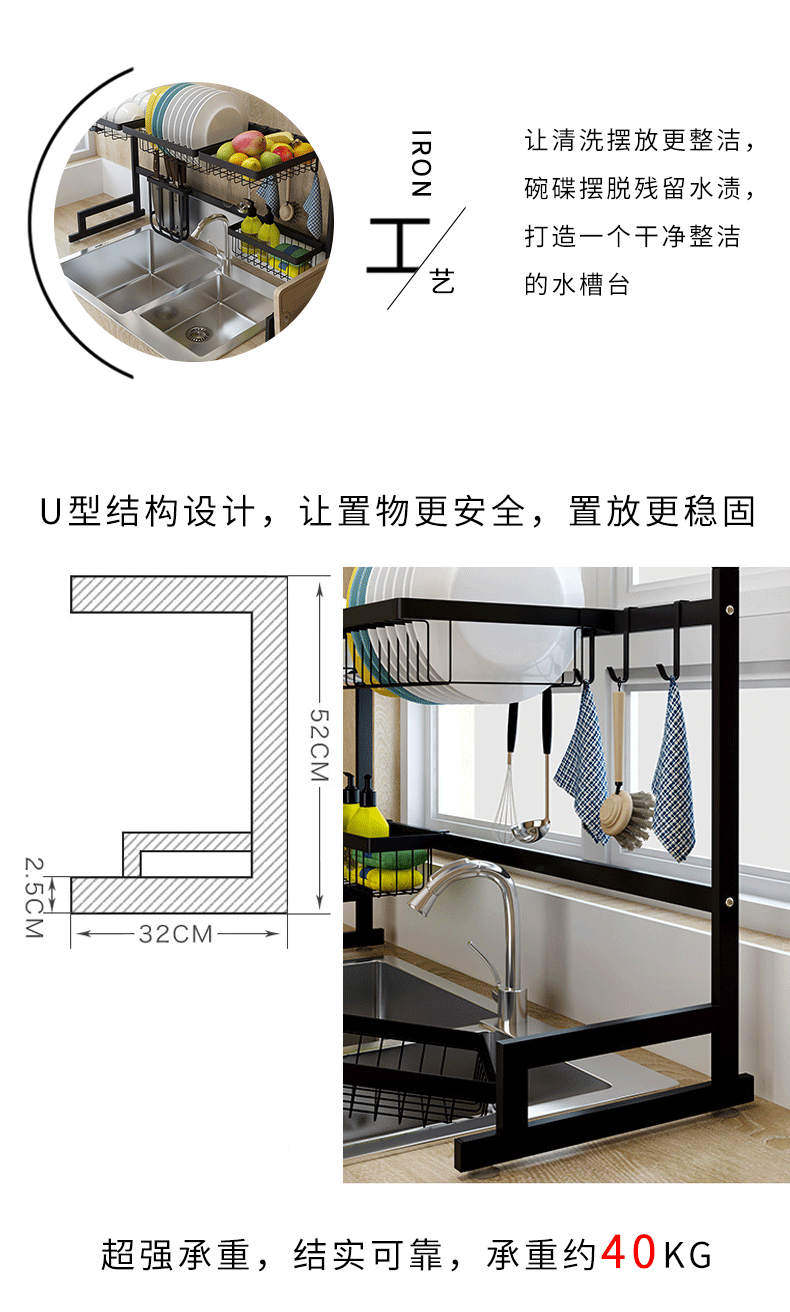 85cm water tank rack (set) black