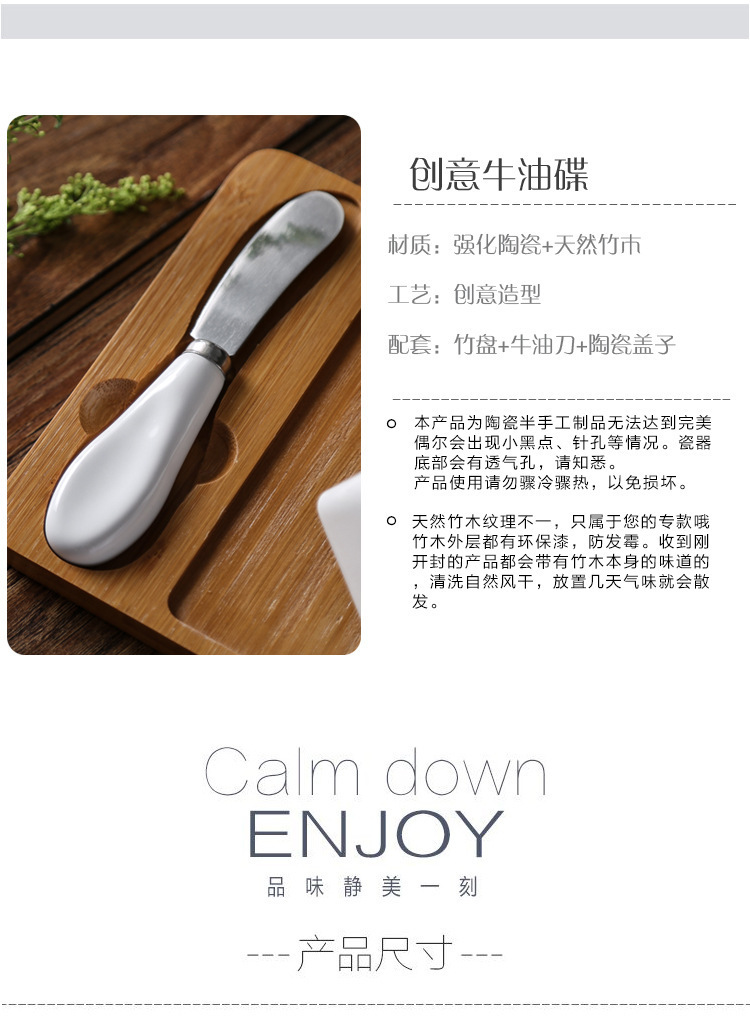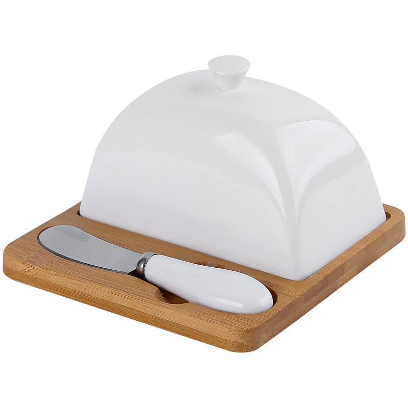 factory wholesale ceramic butter box butter dish set bamboo tray ceramic cover butter knife butterboat western cheese box