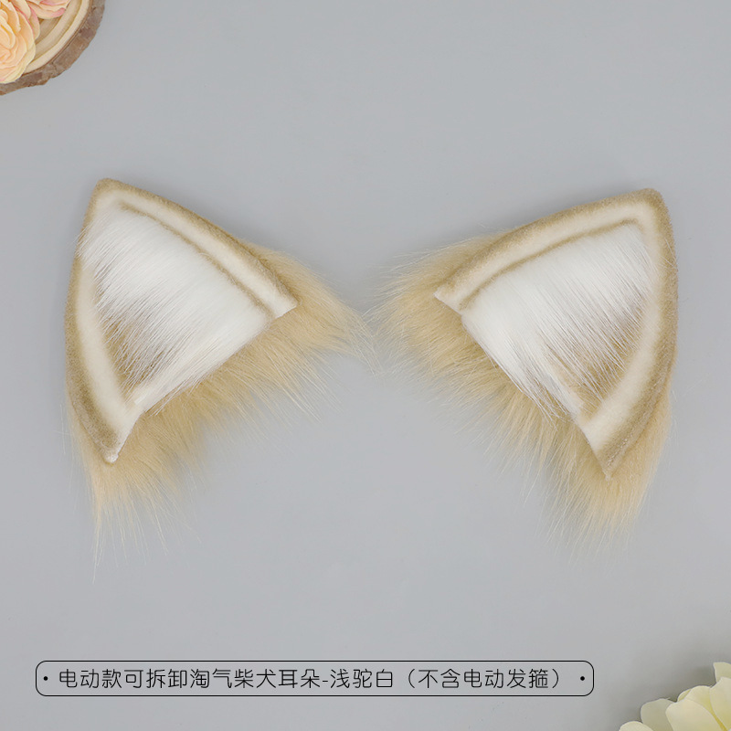 electric naughty shiba inu earmuffs-light camel white