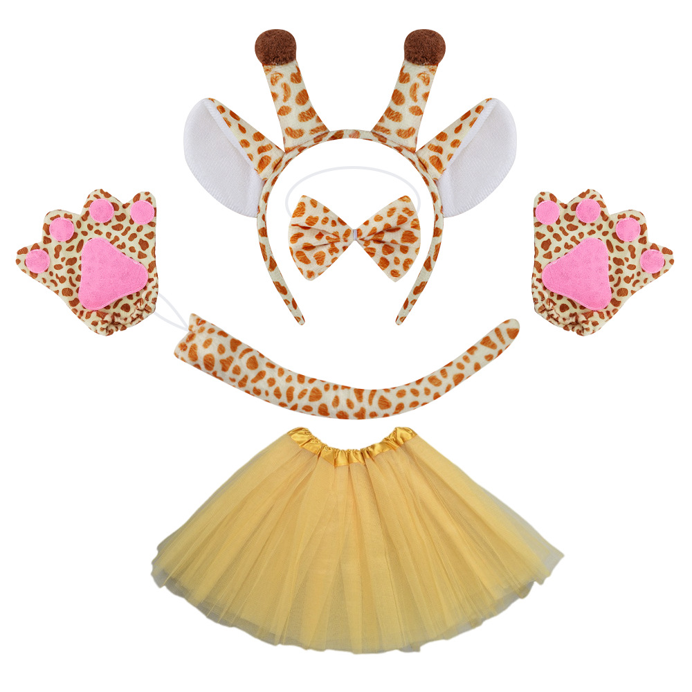 yellow giraffe three-piece set + gloves + golden gauze skirt