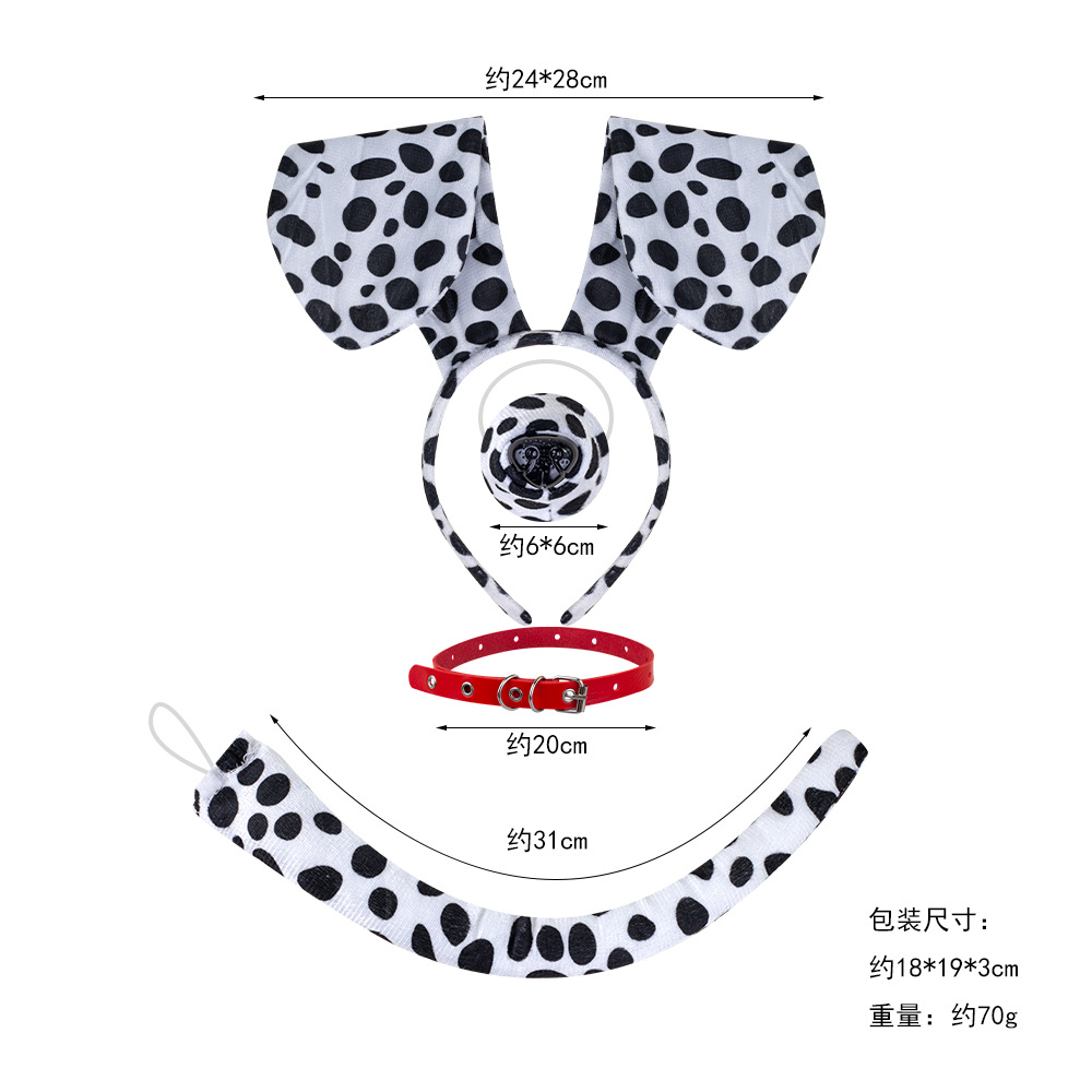 spot sausage dog 4-piece set + finger leakage gloves + white gauzy dress [black round dot]]