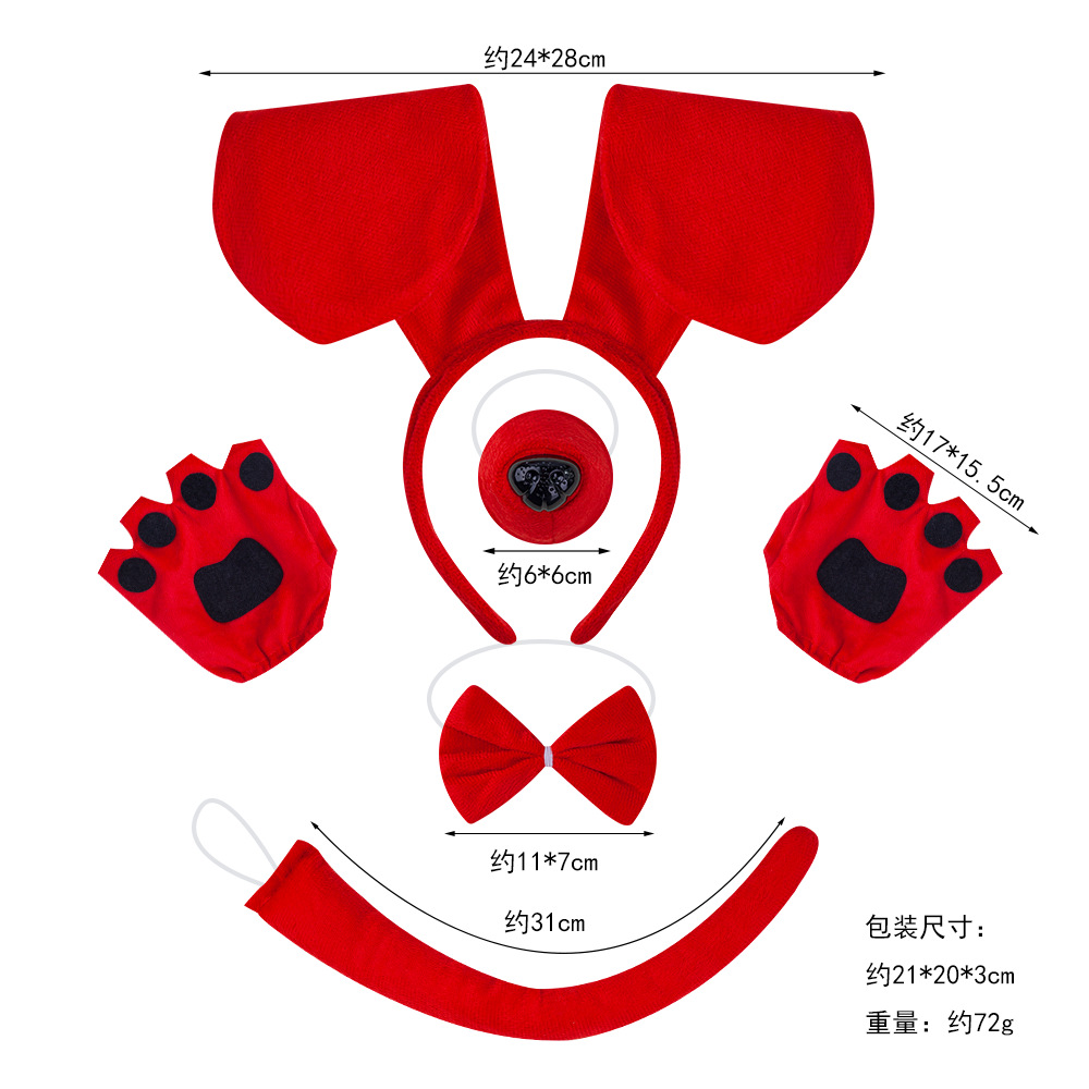 red sausage dog 4-piece set + finger-leaking gloves + red gauze skirt