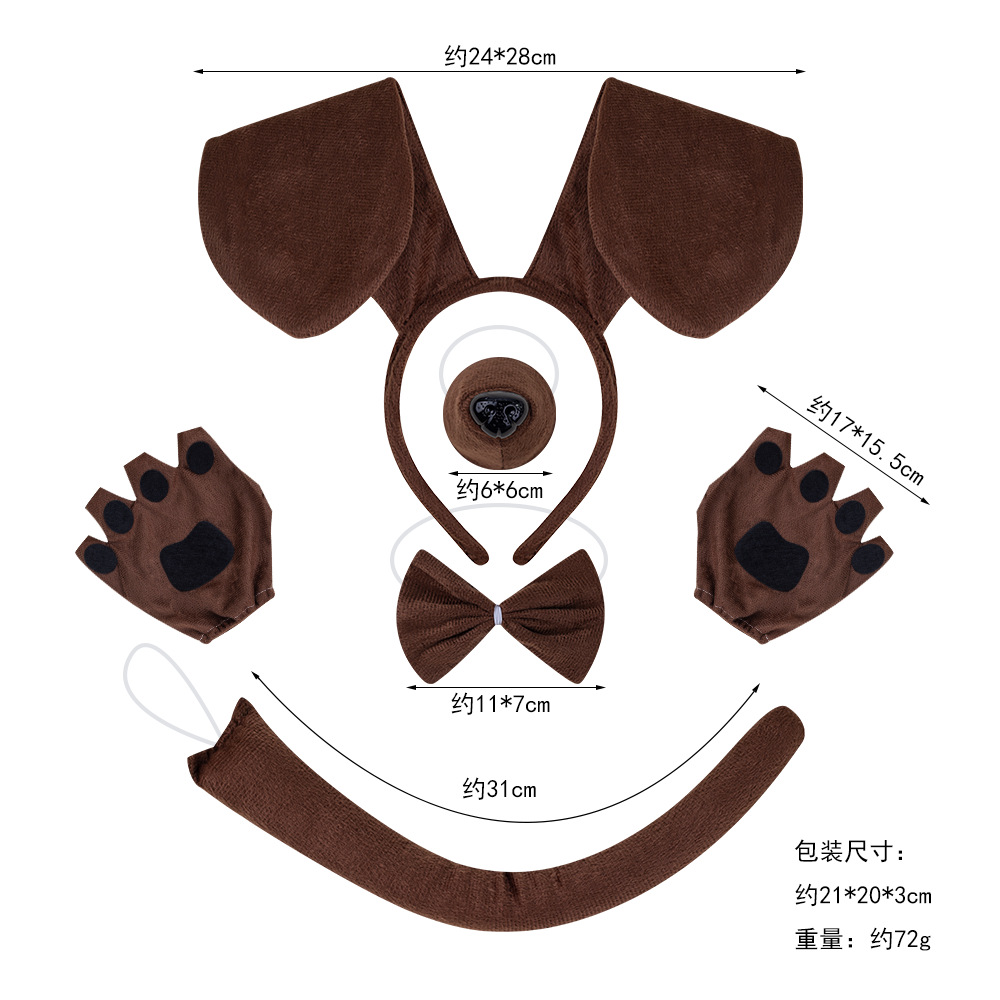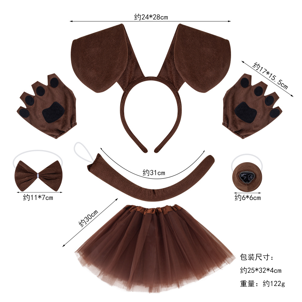 coffee sausage dog 4-piece set + finger leakage gloves + coffee gauze skirt