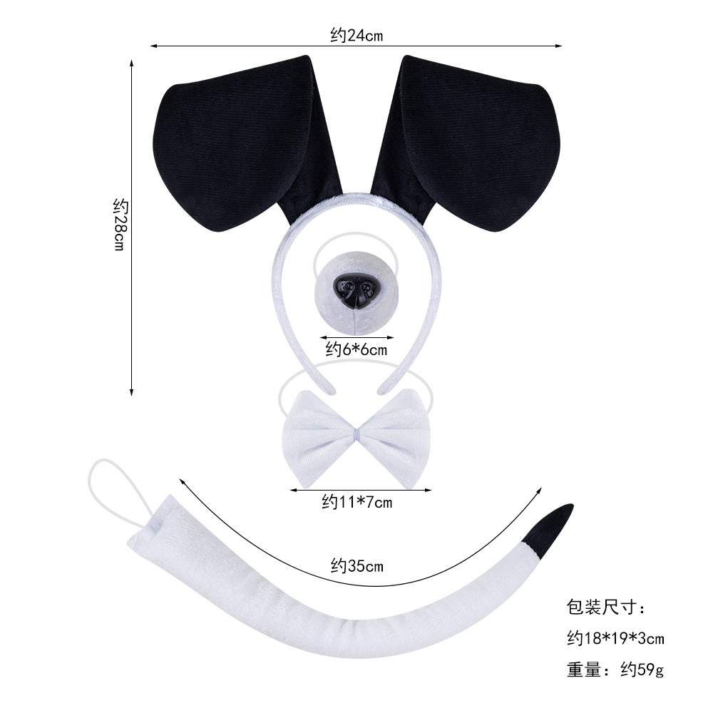 black and white sausage dog 4-piece set + black and white finger leakage gloves