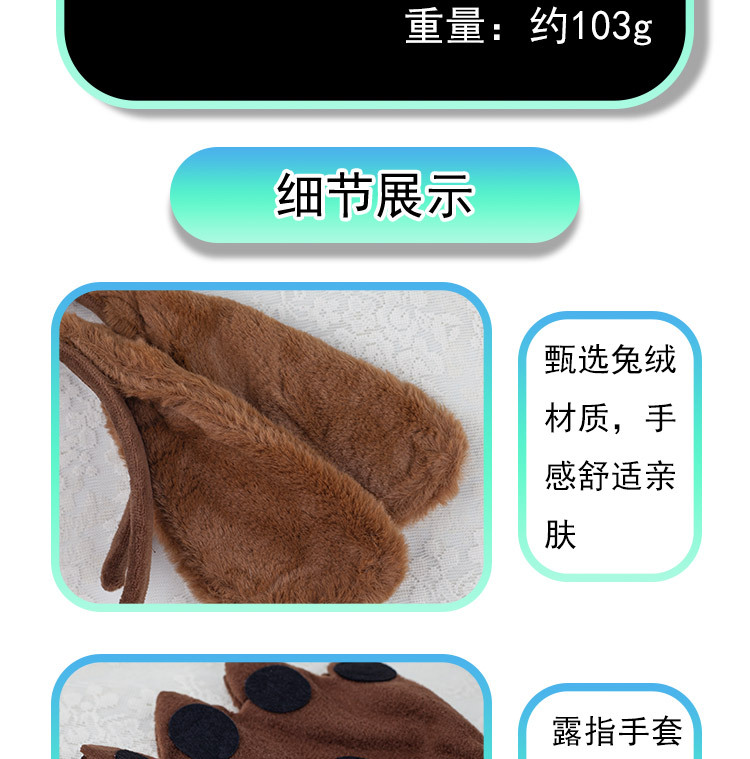 dehaired angora khaki crown lop-ear dog four-piece set + khaki finger leakage gloves