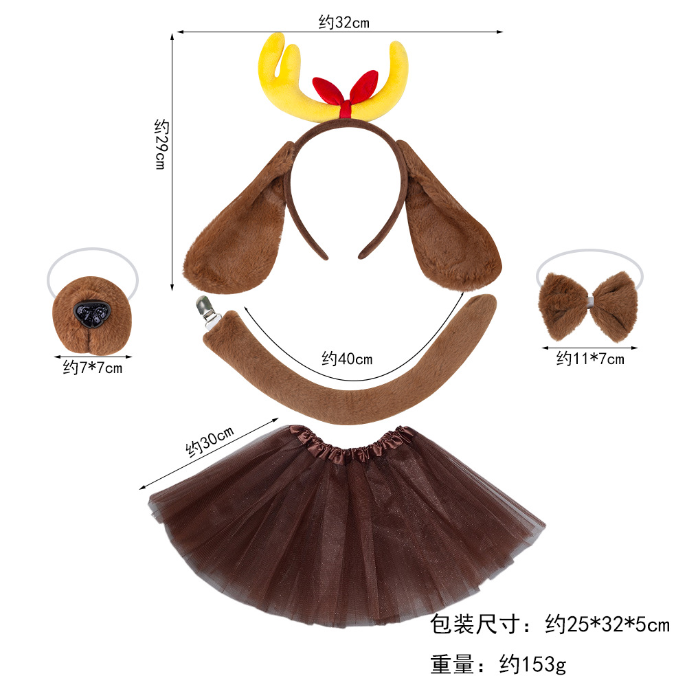 dehaired angora khaki crown lop-ear dog four-piece set + light brown gauze skirt