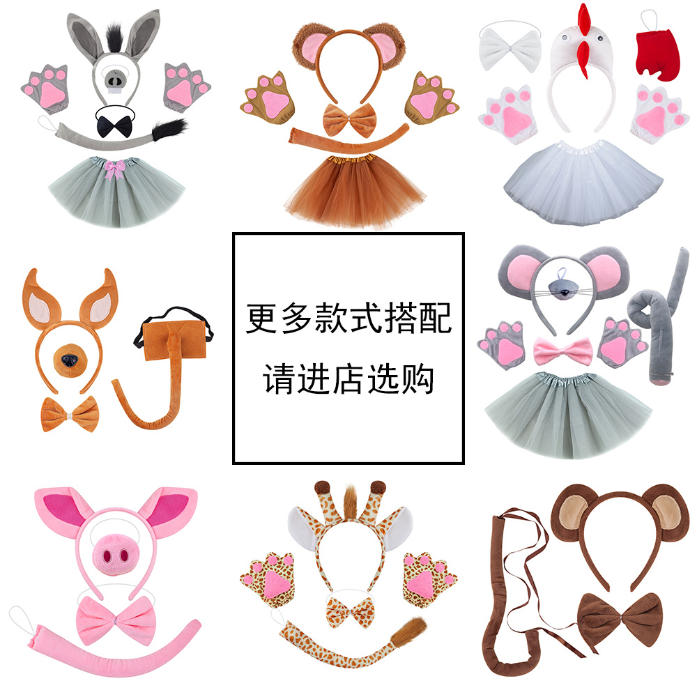 four-piece set of milky white antlers with ears + coffee gauze skirt