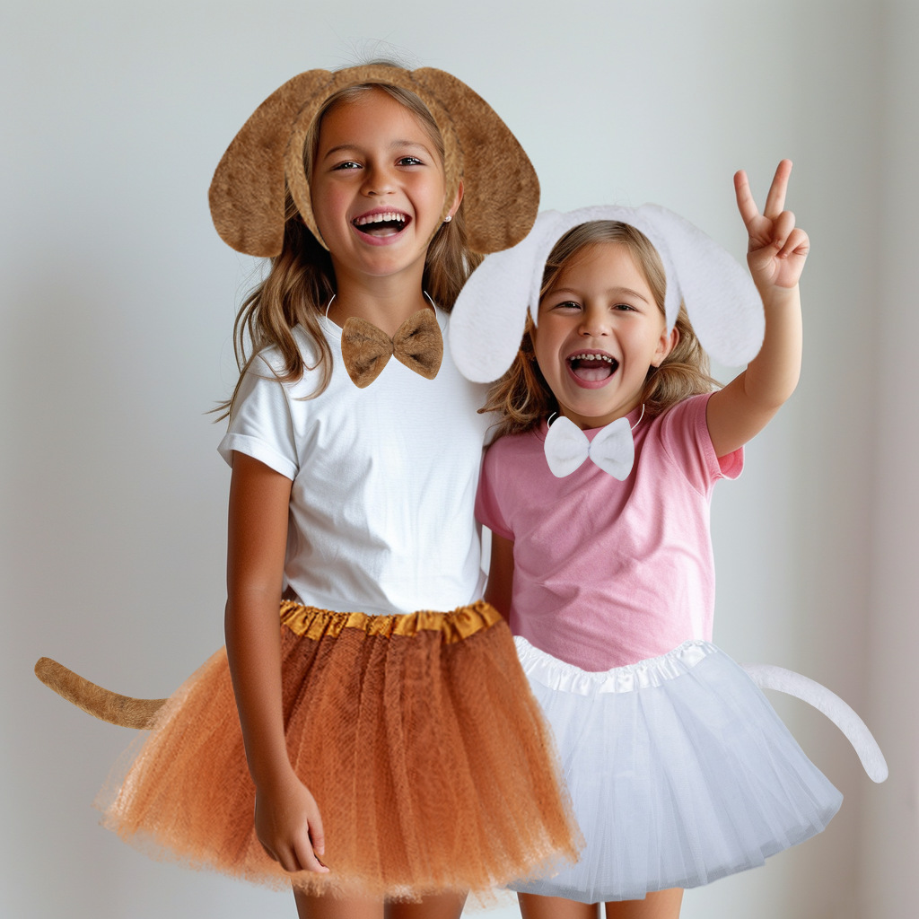 fur spotted dog three-piece set + gloves + white yarn skirt black round dot