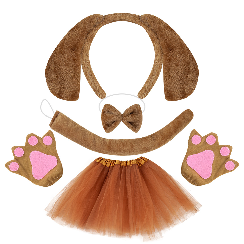 fur coffee dog three-piece set + gloves + dark brown gauze skirt