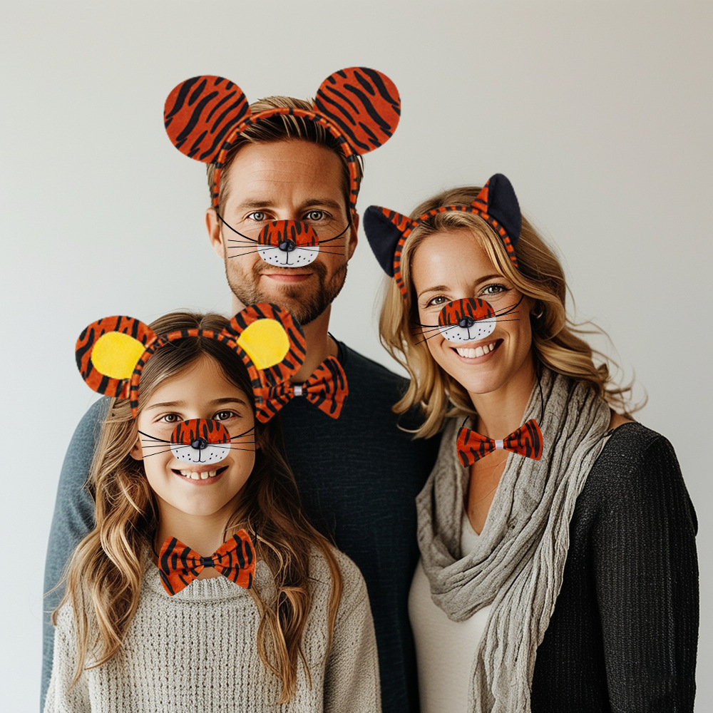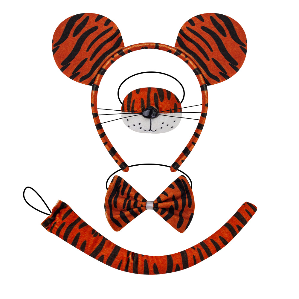 super soft round ear tiger 4-piece set + orange and black gauze skirt