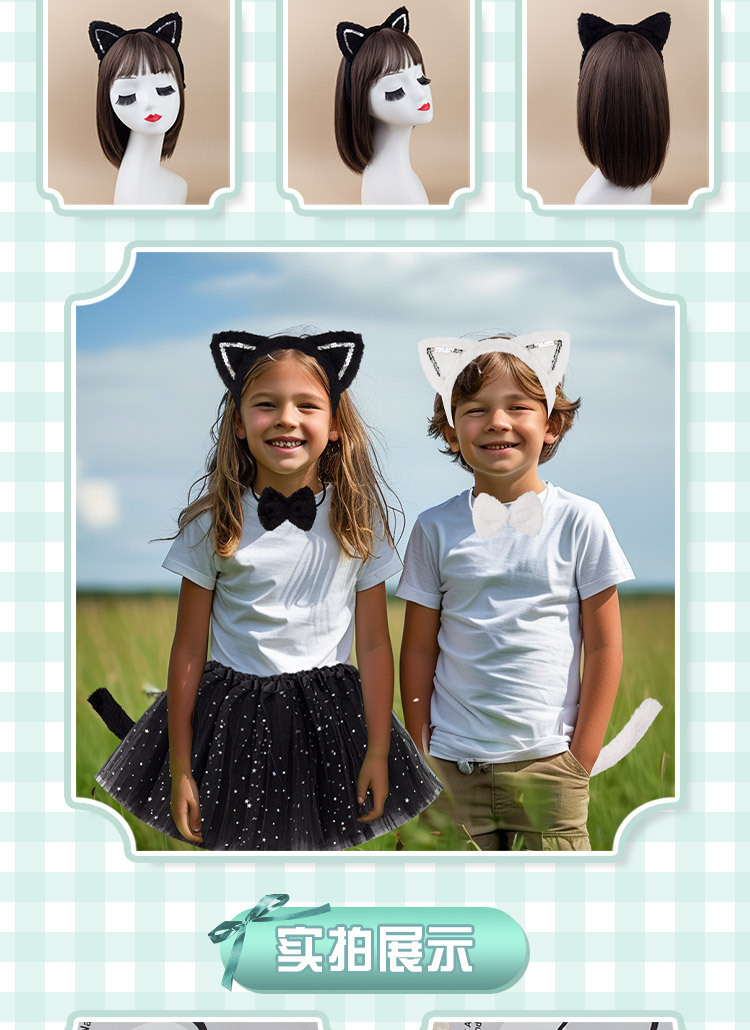 fur transparent lens black cat three-piece set