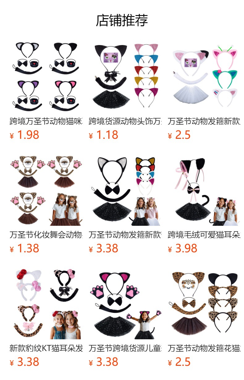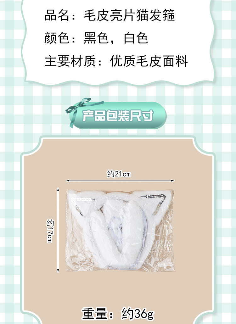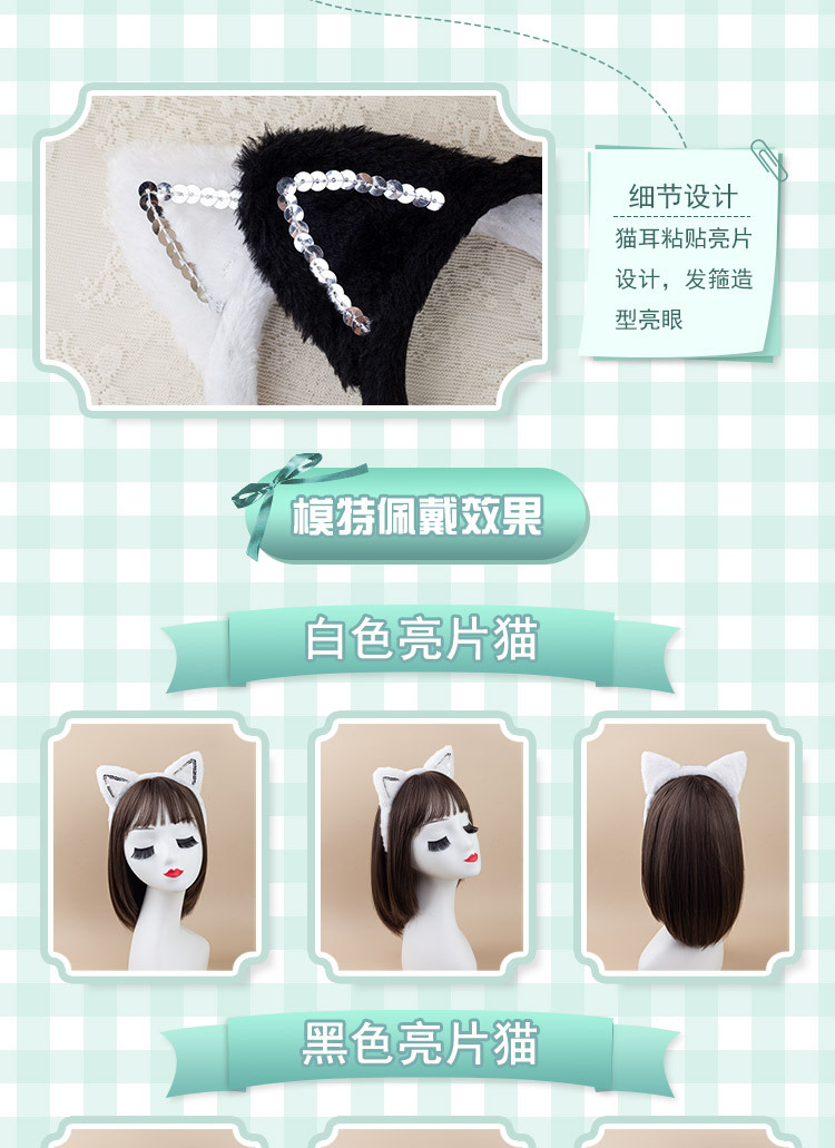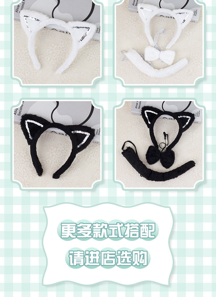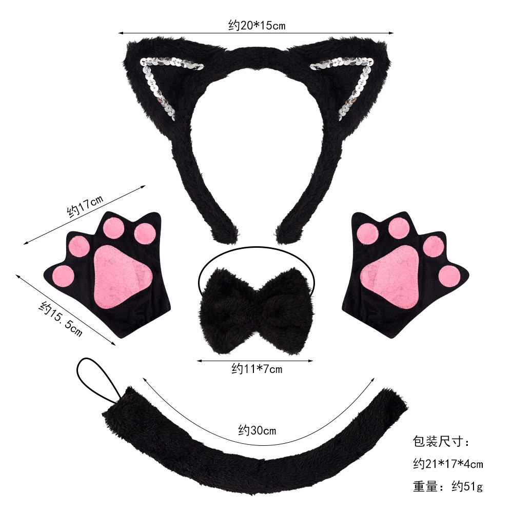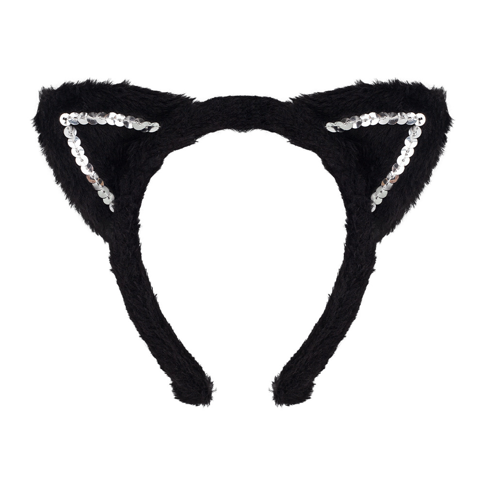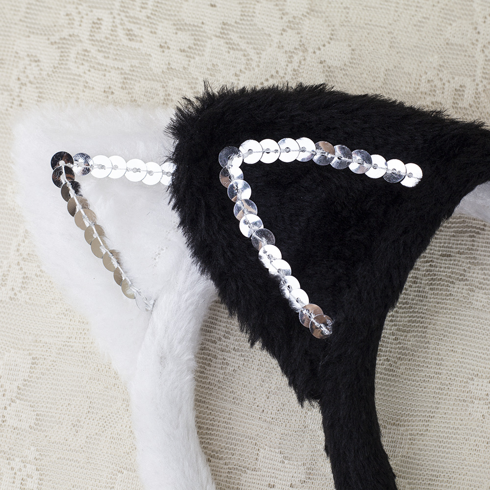 fur sequined black cat ears three-piece set