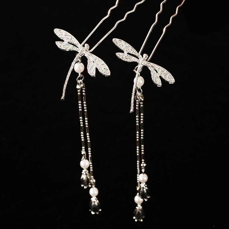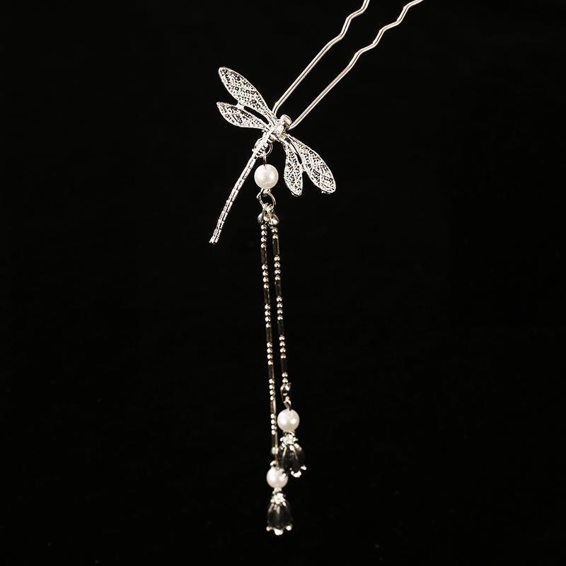 dragonfly u hairpin [silver one] (with tassel)