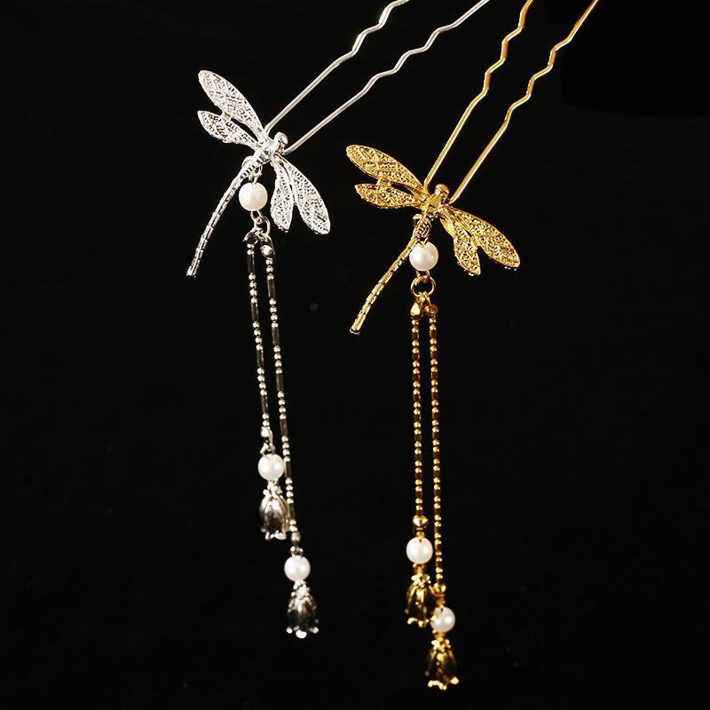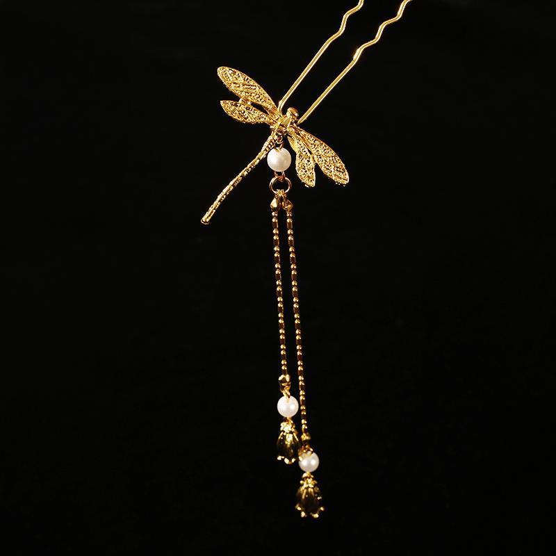 dragonfly u hairpin [golden one] (with tassel)