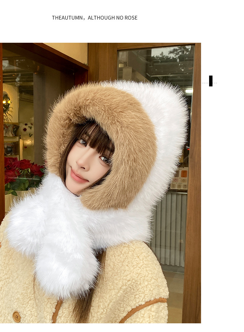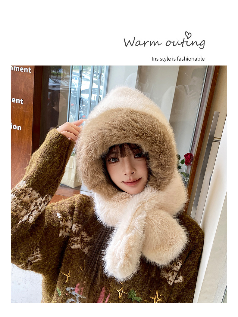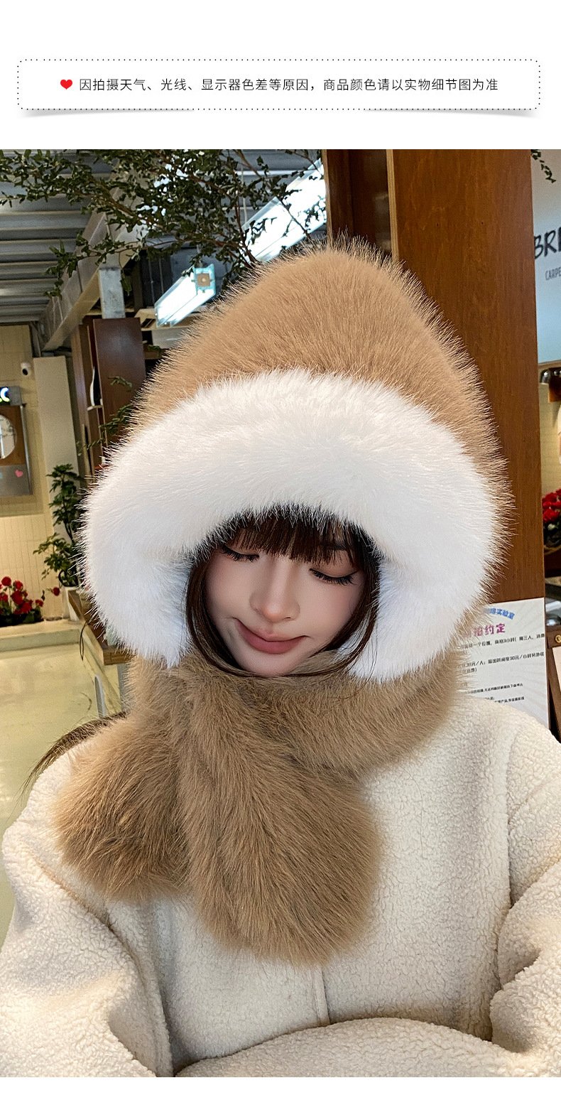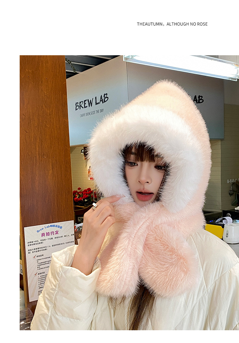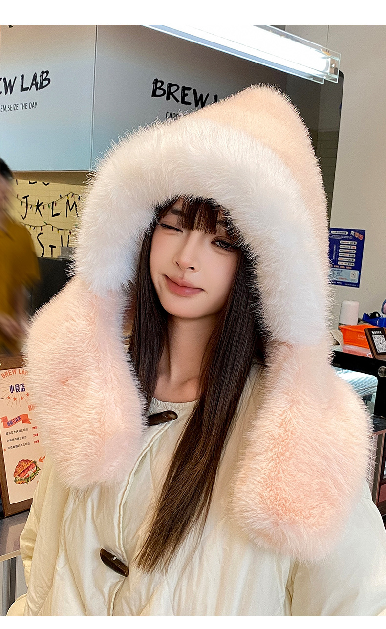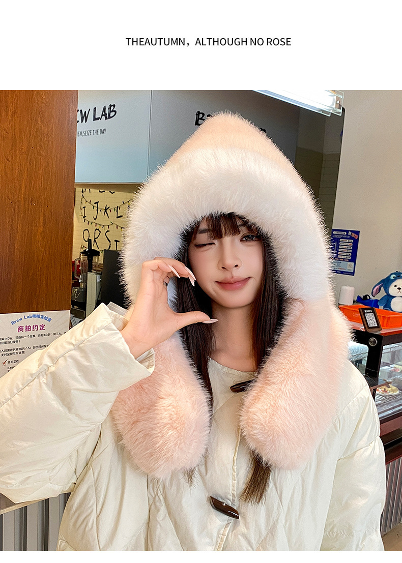 new winter plush bonnet women's imitation fur furry thickened ears protection hat cold-proof hat scarf 2-piece hat set