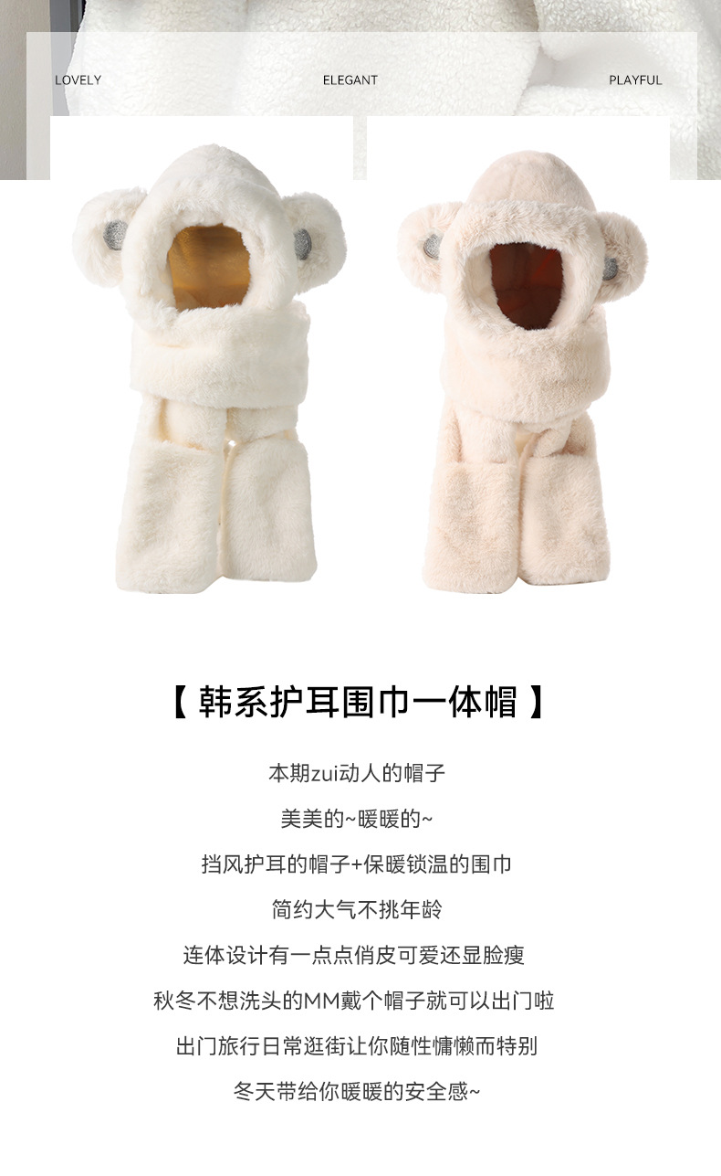winter cute scarf three-piece thickened warm gloves rabbit fur good-looking ear hat outdoor riding winter hat