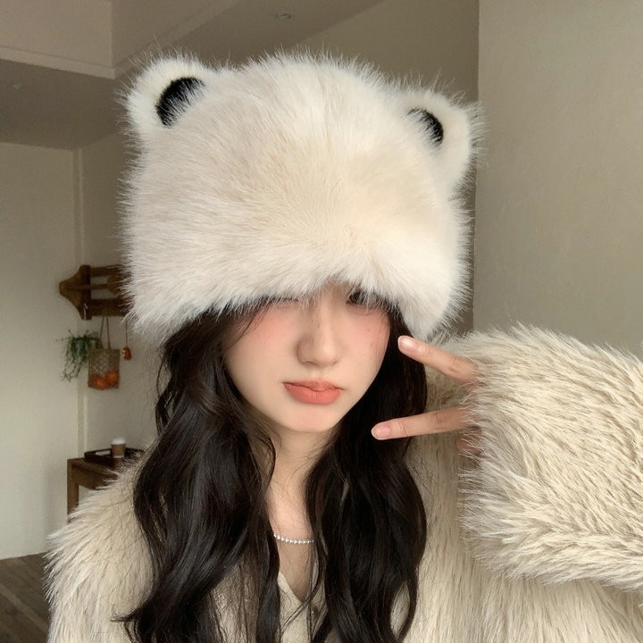 korean internet celebrity bear ears imitation fur bucket hat female winter thicken thermal bucket hat mink-like cold protection earflaps