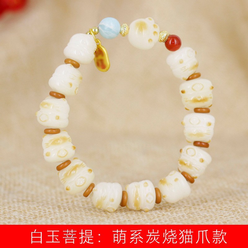 1 white jade bodhi charcoal cat paw style
