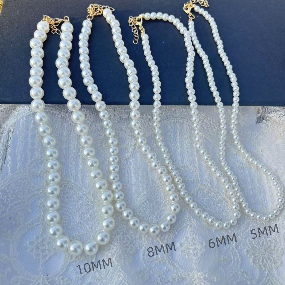 6mm m white pearl necklace with tail chain lengthened