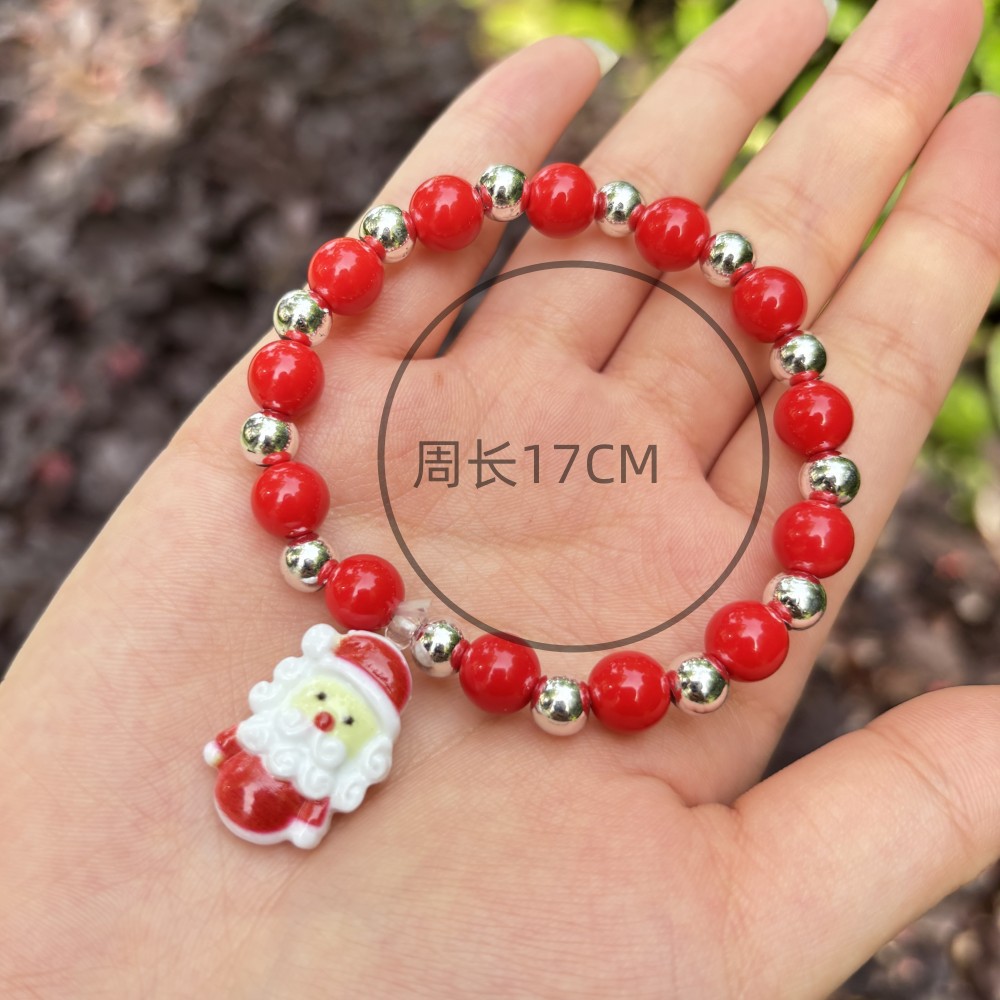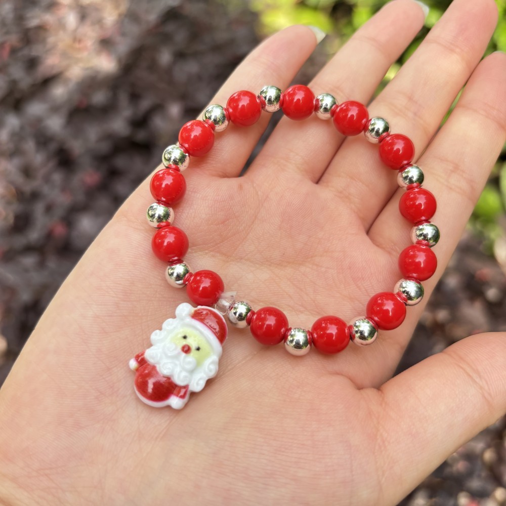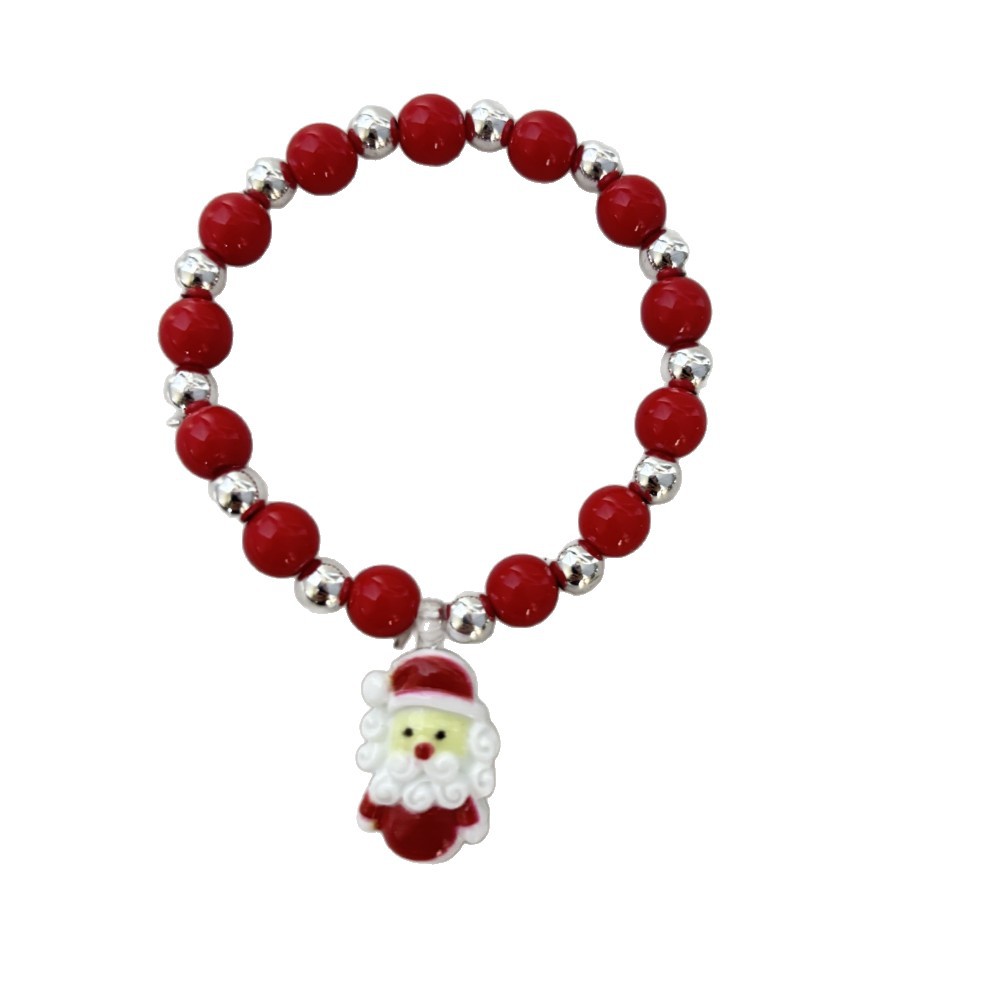 red round beads plus silver beads plus pendant santa claus