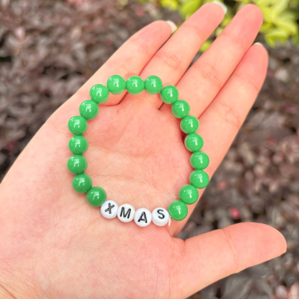8mm green round beads plus letters xmas