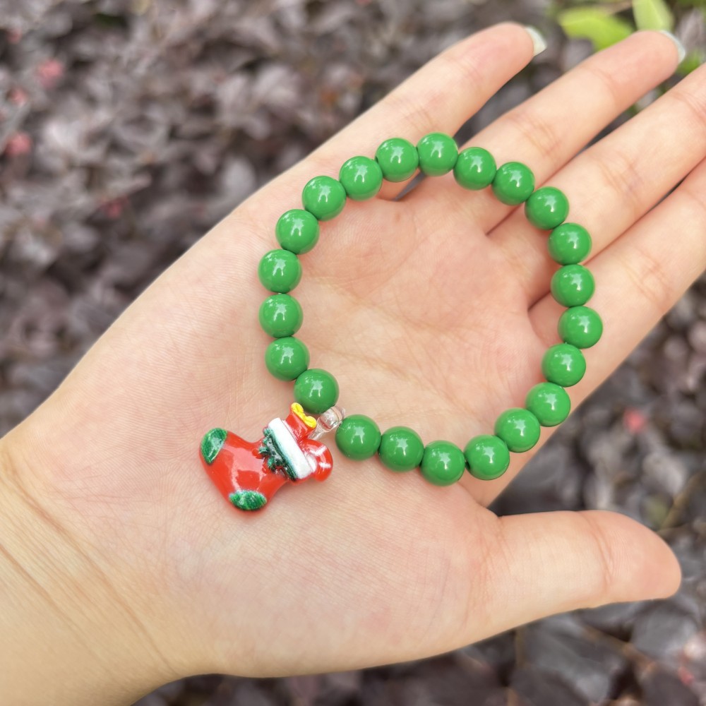 8mm green round beads plus pendant christmas stockings