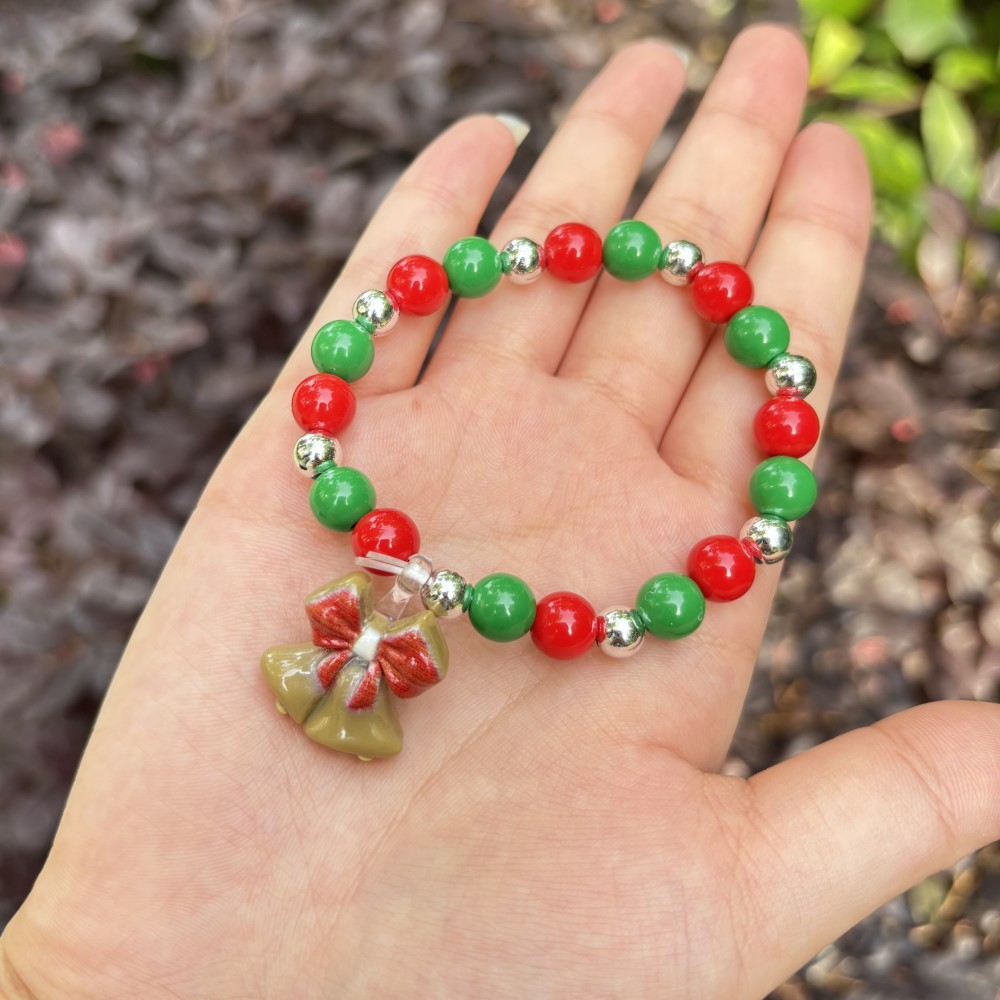 8mm red and green round beads plus pendant christmas gift