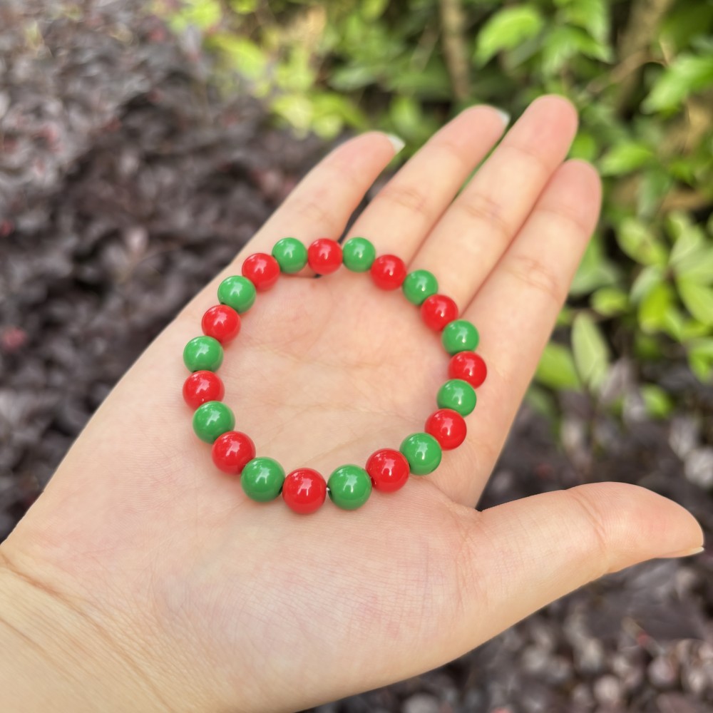 8mm red and green round beads
