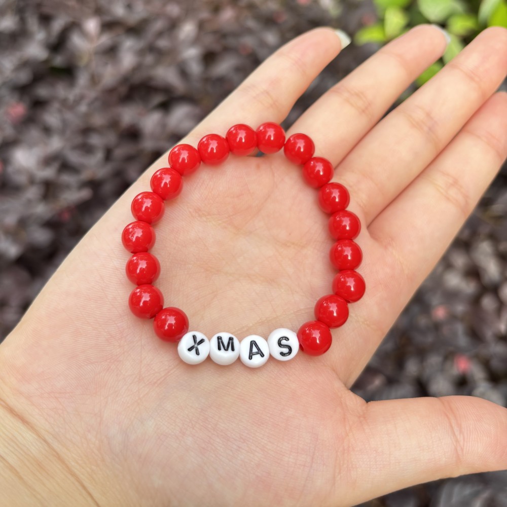 8mm red round beads plus letters xmas