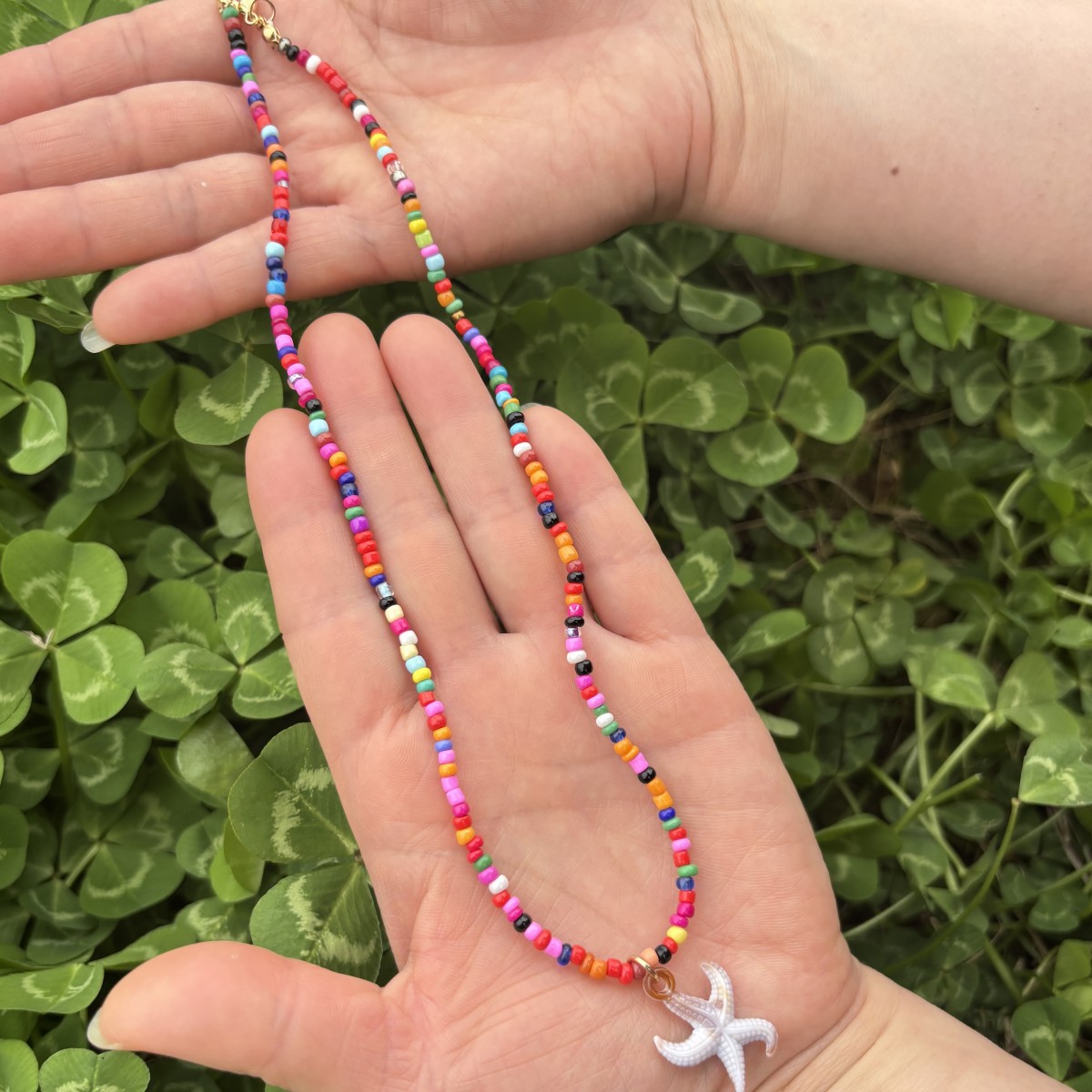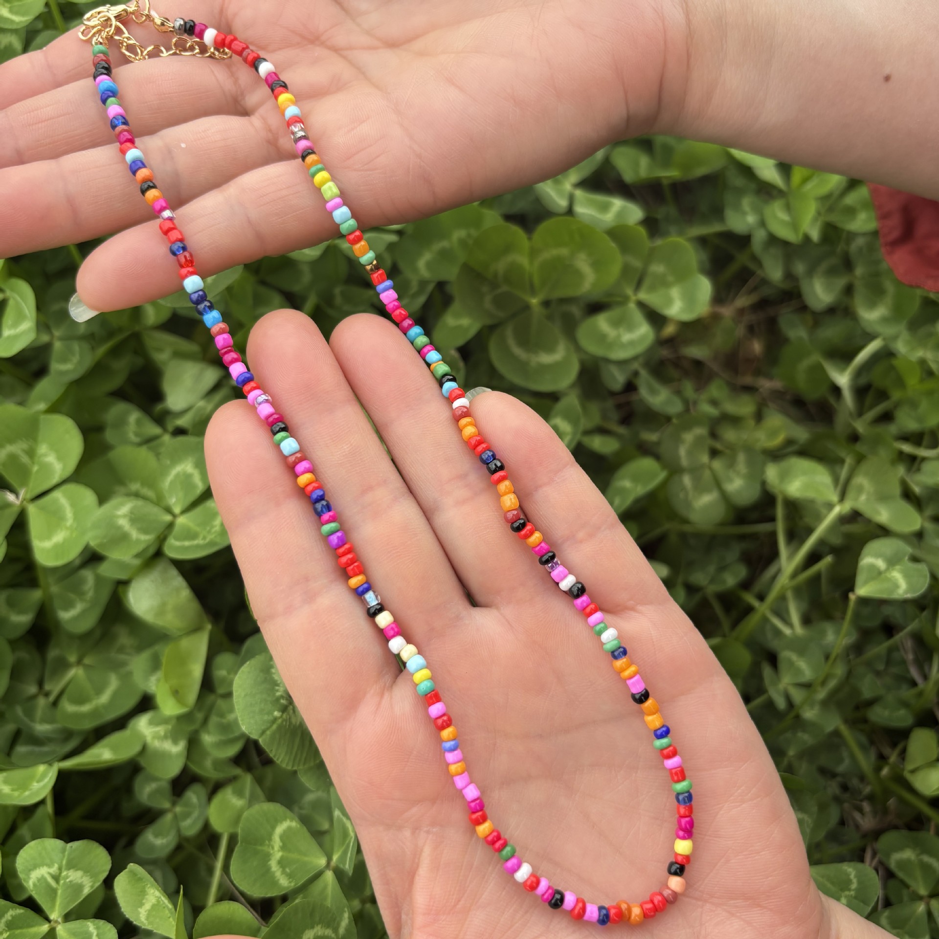 color bead necklace with pendant