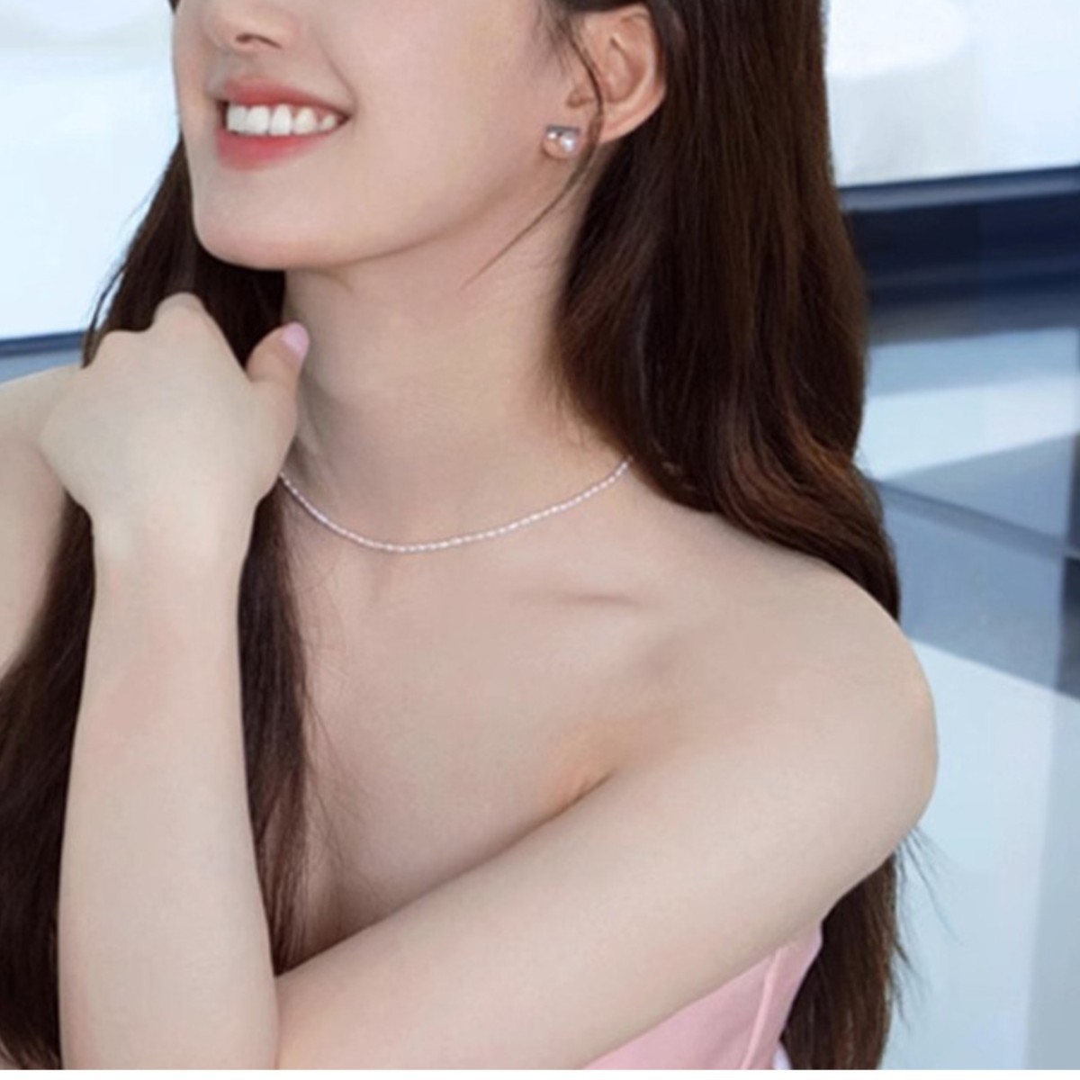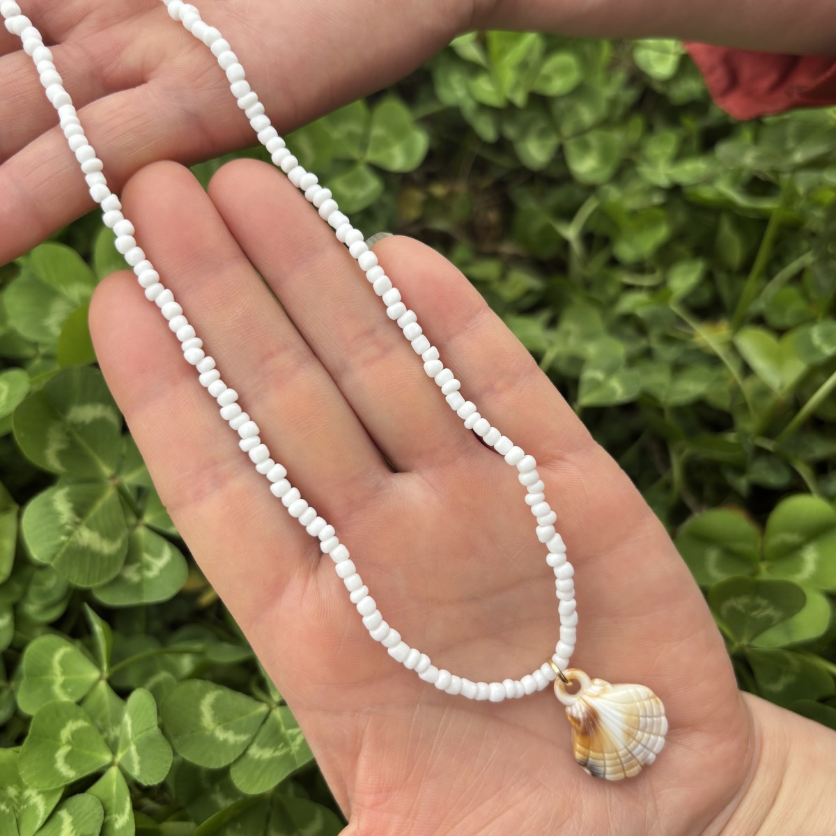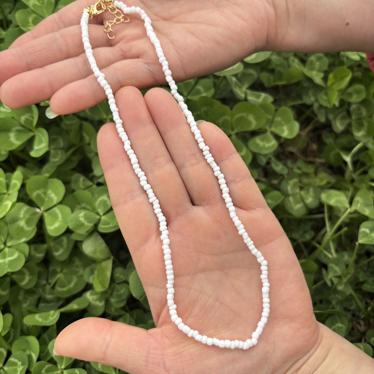 one white bead necklace